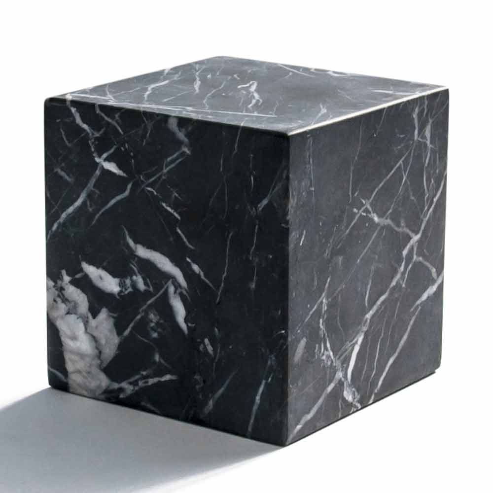 Pesha e vogël prej letre kubike e bërë prej mermeri të zi Marquinia . Isshtë një copë unike pasi çdo bllok mermeri i përdorur ndryshon nga të tjerët për venat dhe nuancat.