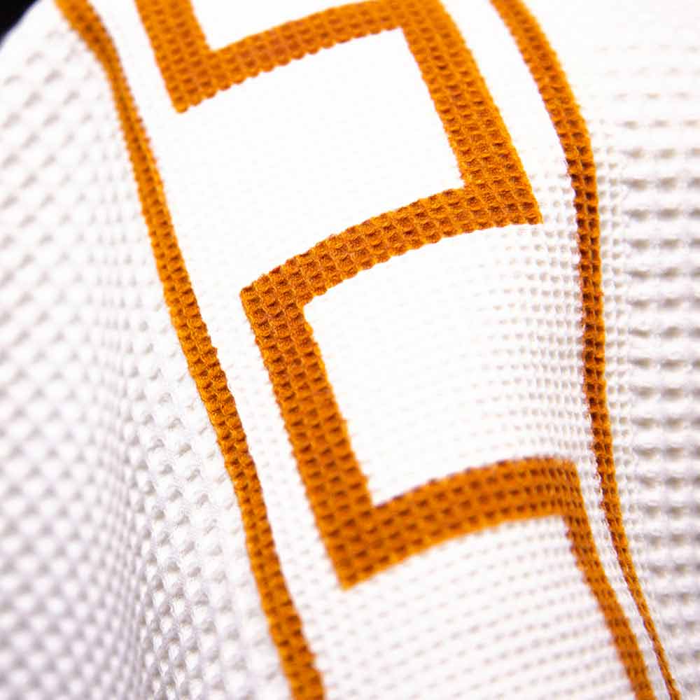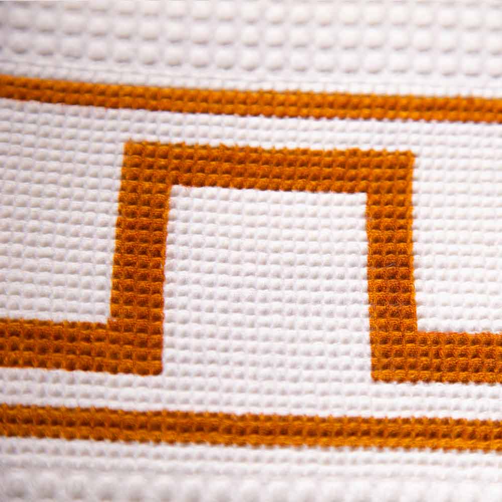 Peshqir vaske në pambuk të pastër me huall mjalti me shtypje të shtypur greke Pompeiane me ngjyrë të ndryshkut, krijim i punuar me dorë i bërë në Itali pjesë unike.