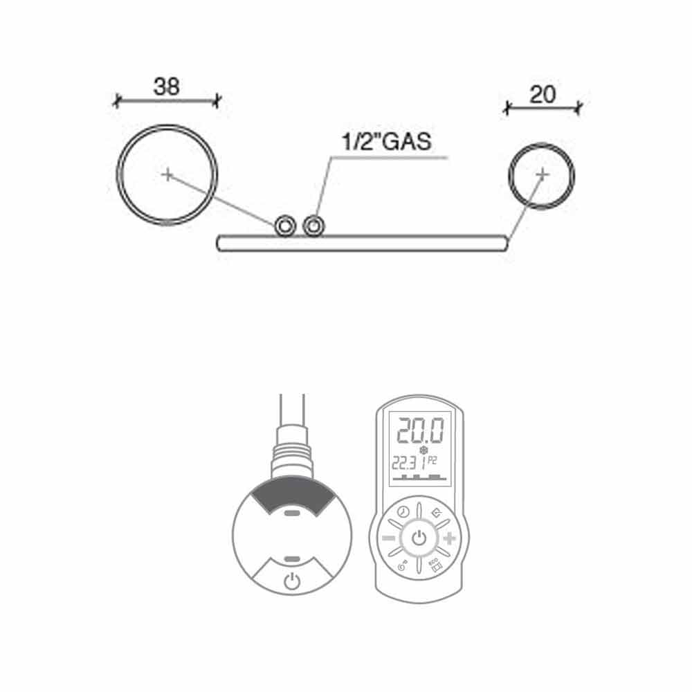 Termostati 110 mm duhet të shtohet në lartësi. Furnizim me energji elektrike me një fazë 230 volt. Në dispozicion në madhësi të ndryshme përveç atyre në menunë në rënie. Kuti termostatike e bardhë si standard për radiatorët e bardhë; krom për radiatorët me ngjyra dhe përfundimet e çelikut. Produkti dallohet për inercinë e tij të ulët termike dhe për kapacitetin e tij për nxehtësi të lartë rrezatimi , duke garantuar gjithashtu një fleksibilitet të caktuar në menaxhimin e klimës së dëshiruar. Për më tepër, çlirimi gradual i nxehtësisë vazhdon kur sistemi është i fikur, gjë që siguron një klimë të mirëqenies dhe mirëmbajtjen e temperaturës për një kohë të gjatë.