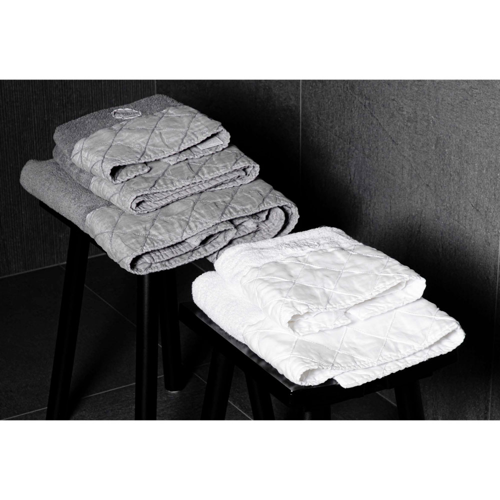 Vlera e traditës i bashkohet stilit të jetës moderne me peshqirine bardhë të fytyrës me pambuk me zbukurim gjeometrik . Peshqiri është prodhuar në Itali i bërë nga pambuk me cilësi të lartë dhe i bërë i butë në prekje falë trajtimeve të veçanta që rrisin pamjen e saj natyrale. Shtë një pëlhurë ideale për banjën pasi është hipoalergjike , antibakteriale dhe mbi të gjitha higroskopike, në respekt të plotë të lëkurës suaj, falë përdorimit të ngjyrave natyrore dhe hipoalergjike që japin shkëlqim dhe dhembshuri. Lehtësia , liria, eleganca dhe pastërtia janë fjalët kryesore që përmbahen në këtë produkt me një bukuri fisnike dhe pëlhurë të hollë .