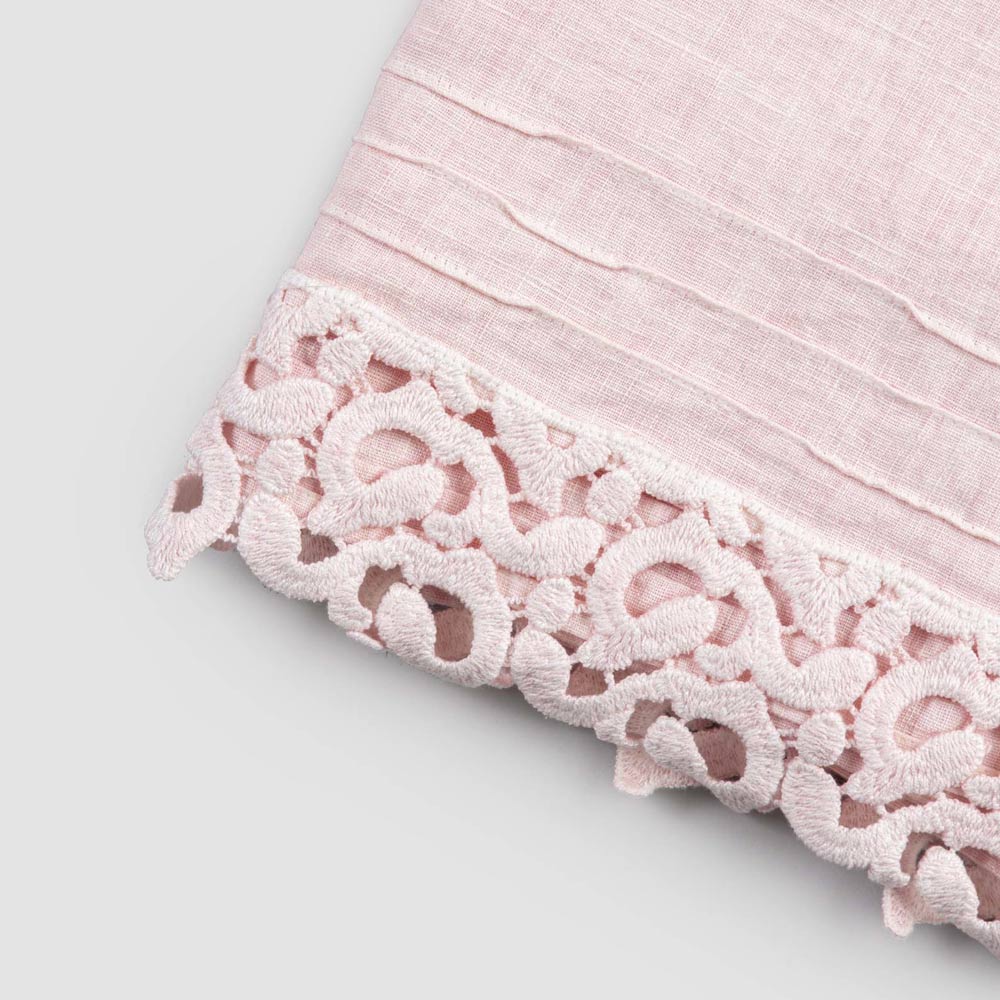 peshqirin prej liri të rënda prej bruz ose rozë për foshnje me dantella Poema në njërën nga dy anët e shkurtra.