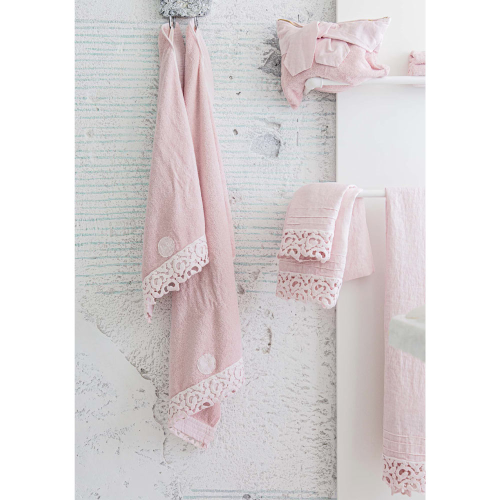 Peshqir vaske prej liri të rëndë me dantella poezie, luks dhe dizajn në 2 përfundime të prodhuara në Itali.