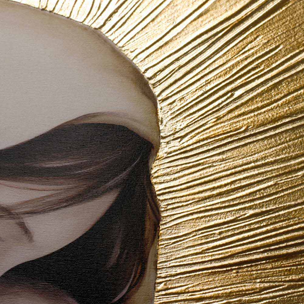 Amore Infinito është zbukuruar me dorë me gjethe ari të ngulitur në kanavacë.