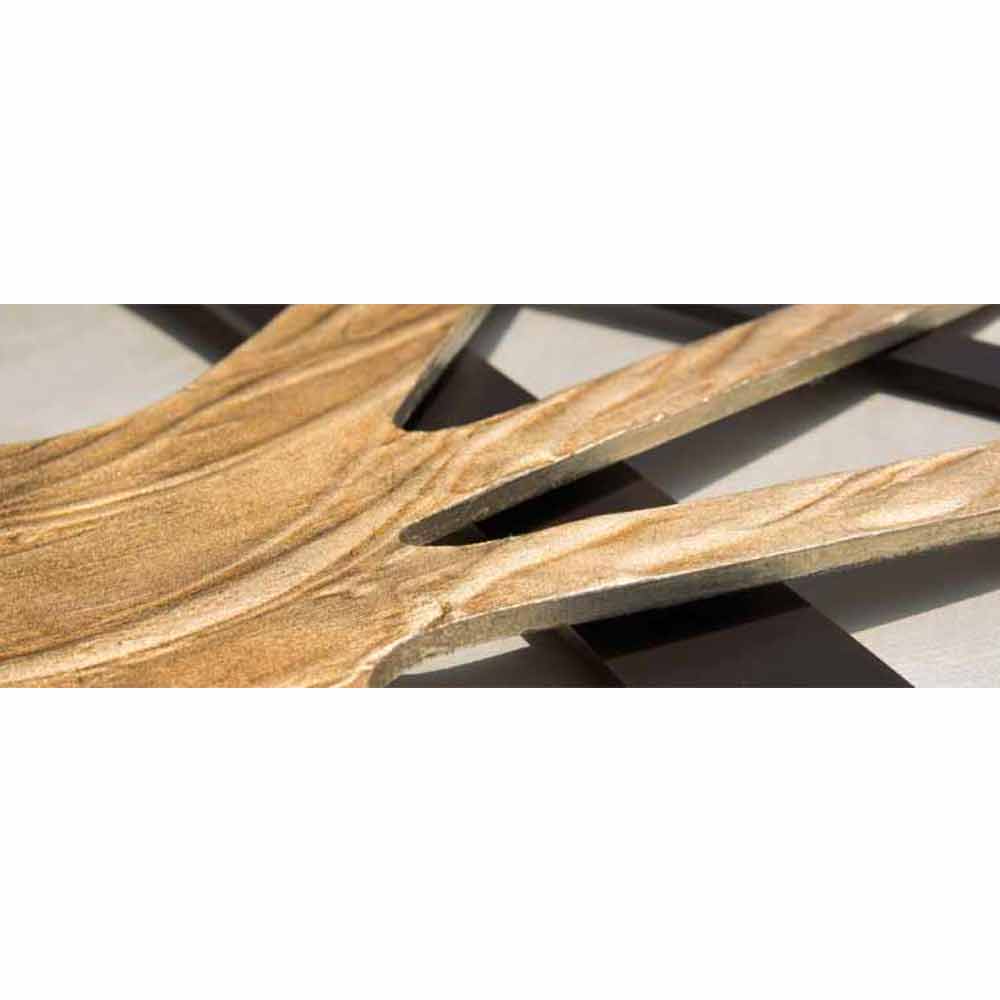 Pikturë murale me dizajn modern. MDF zbukuroi dekorimet në fletë ari dhe llak kafe të errët në një panel të zbukuruar me një nënë me perla të përfunduar.