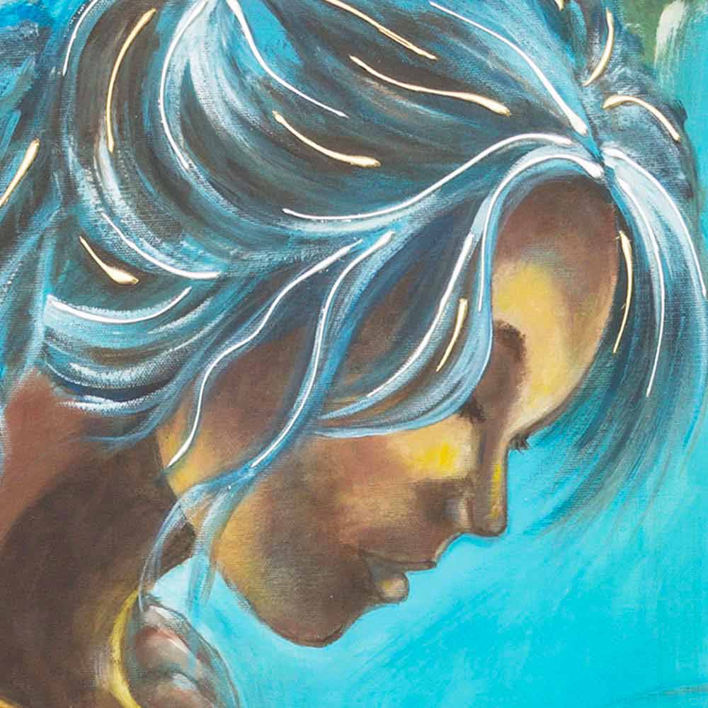 Kanavacë pambuku me detaje rrëshirë embossed. Piktura përshkruan figurën e një gruaje të re të bukur; flokët e saj të çmuar janë zbukuruar me gjethe argjendi dhe ari.