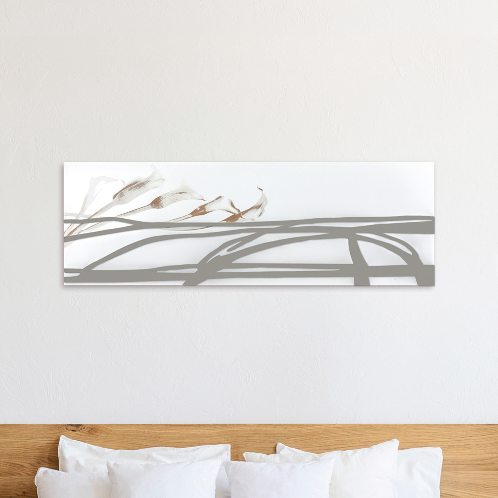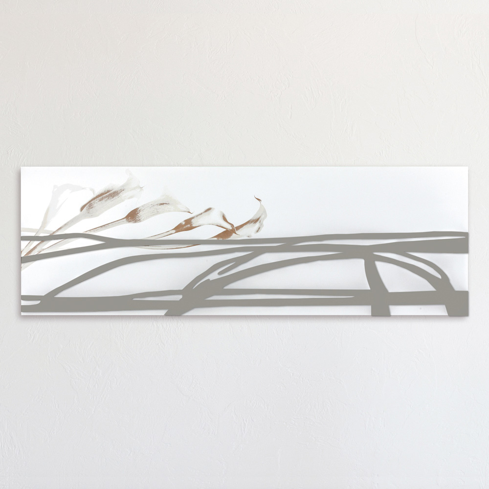 Paneli dekorativ është realizuar duke përdorur teknikën e shënjimit me laser e cila krijon një reliev në material, duke krijuar shkallëzime të ndryshme të ngjyrave të krijuara në panel. Paneli është prej druri të bardhë të llakuar me aplikime ngjyrë balte . Paneli është elegant dhe i matur, falë dekorimit të pasqyruar me pleksiglas dhe shënjimit të zambakëve calla.