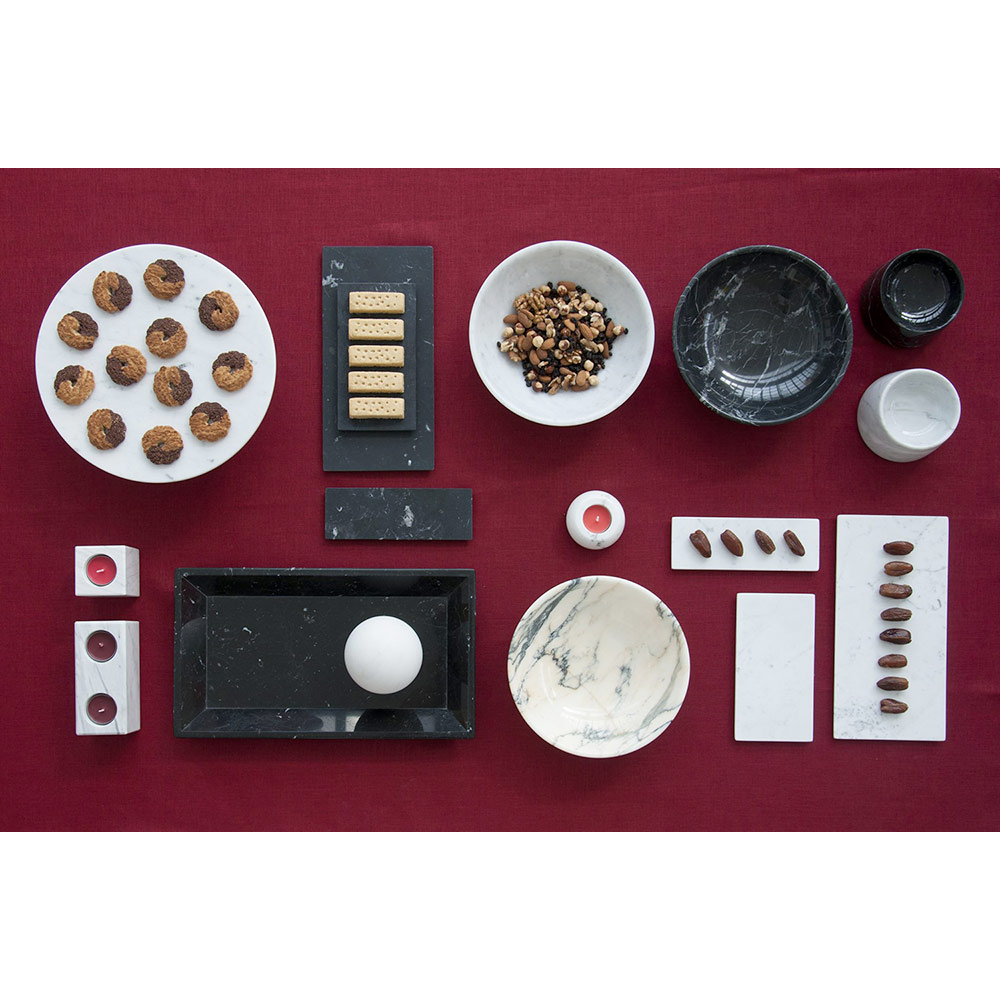 Mermeri i bardhë Carrara i përdorur për krijimin e këtyre produkteve furnizohet nga gurorja Poggio Silvestre, një burim i mermerit të cilësisë së parë të klasifikuar që në shekullin e kaluar, ndërsa mermeri i zi Marquinia nxirret nga guroret spanjolle dhe karakterizohet nga venat e saj të çrregullta me ngjyrë të bardhë ose gri të lehta të cilat i japin mermerit një pamje origjinale dhe moderne.