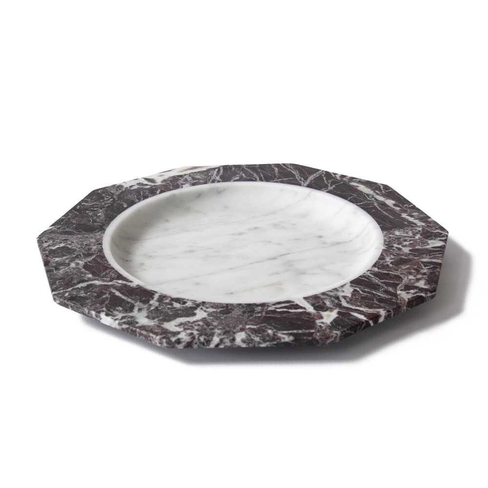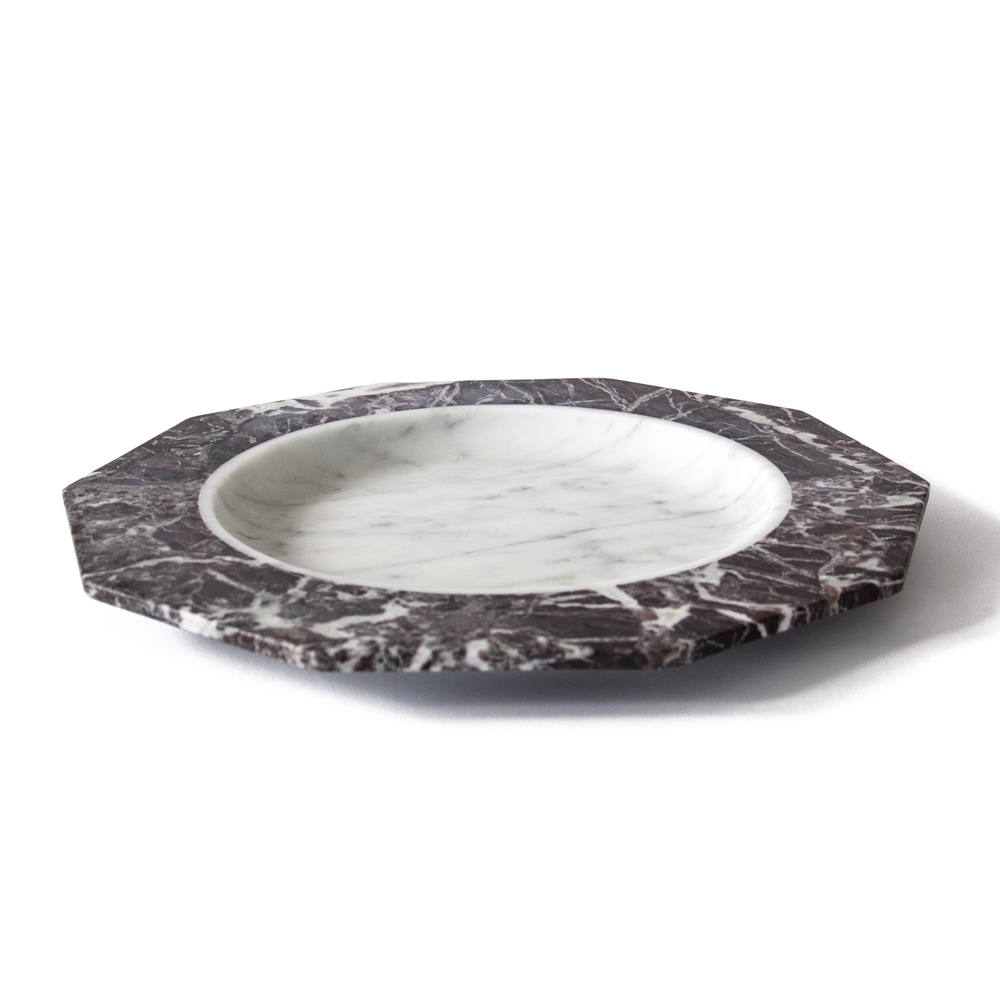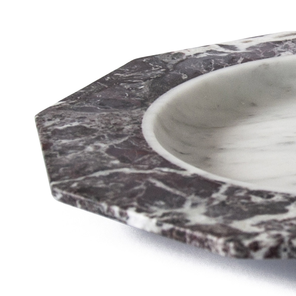 Pjatë sateni në mermer Levanto të bardhë, të zezë ose të bardhë dhe të kuqe, prodhim në Itali.