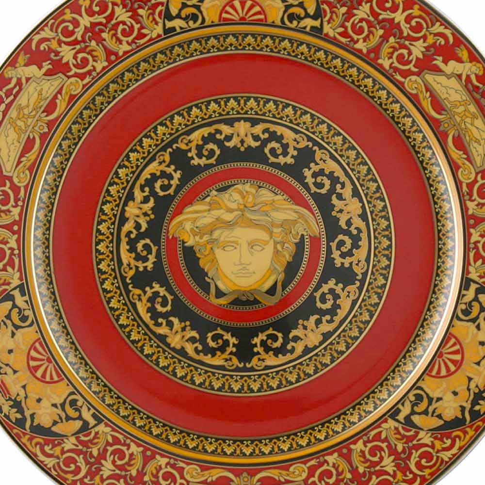 Medusa - Rosenthal takohet me Versace: Shërbimi i parë prej porcelani nga Versace Versace dhe Rosenthal janë të dyja sinonime të përsosmërisë dhe cilësisë së lartë. Rosenthal ia detyron famën e saj mbarëbotërore aftësisë së saj për të kombinuar gjithmonë traditën dhe inovacionin, ndërsa Versace është i njohur në të gjithë botën për shkëlqimin e tij unik dhe luksoz. Nga bashkëpunimi mes këtyre kompanive prestigjioze, lindi një nga shërbimet e para të koleksionit "Rosenthal meets Versace" : shërbimi "Medusa" nga Gianni Versace që i përket koleksionit "Ikarus" që pasqyron si kurrë më parë botën e paimitueshme të pasurisë dhe ngjyrat e Versace. Pika kryesore e këtij koleksioni është një kokë e mrekullueshme e artë Medusa, marka e pagabueshme Versace, e rrethuar nga dekorime ekspresive barok. Koka e Medusës është e pranishme – në qendër – në të gjitha kupat dhe kanat, si dhe në të gjitha pjatat e mëdha dhe të vogla të koleksionit “Meduza”. Ngjyrat e vërteta aristokratike - e kuqja e ndezur, ari elegante dhe e zeza - dhe modelet dhe stolitë e përpunuara filigrani i japin kokës Medusa një kornizë ngjyrash luksoze me elegancë të paparë. Koleksioni "Medusa" përfshin një servis të plotë tavoline dhe një servis kafeje si dhe aksesorë të shumtë. Filxhanë të mëdhenj mëngjesi për kapuçino dhe latte, pjata dhe tasa me supë janë pjesë e koleksionit aksesorë dhuratash po aq të vlefshëm dhe shumë personal si unaza e pecetës, mbajtësja e qirinjve, vazot dhe një set elegant për duhanpirës. Dy koleksionet e qelqit "Medusa Lumière" dhe "Méandre" si dhe koleksioni i takëmeve "Medusa Gold" plotësojnë tryezën elegante, plot ngjyra në stilin unik të botës Versace.