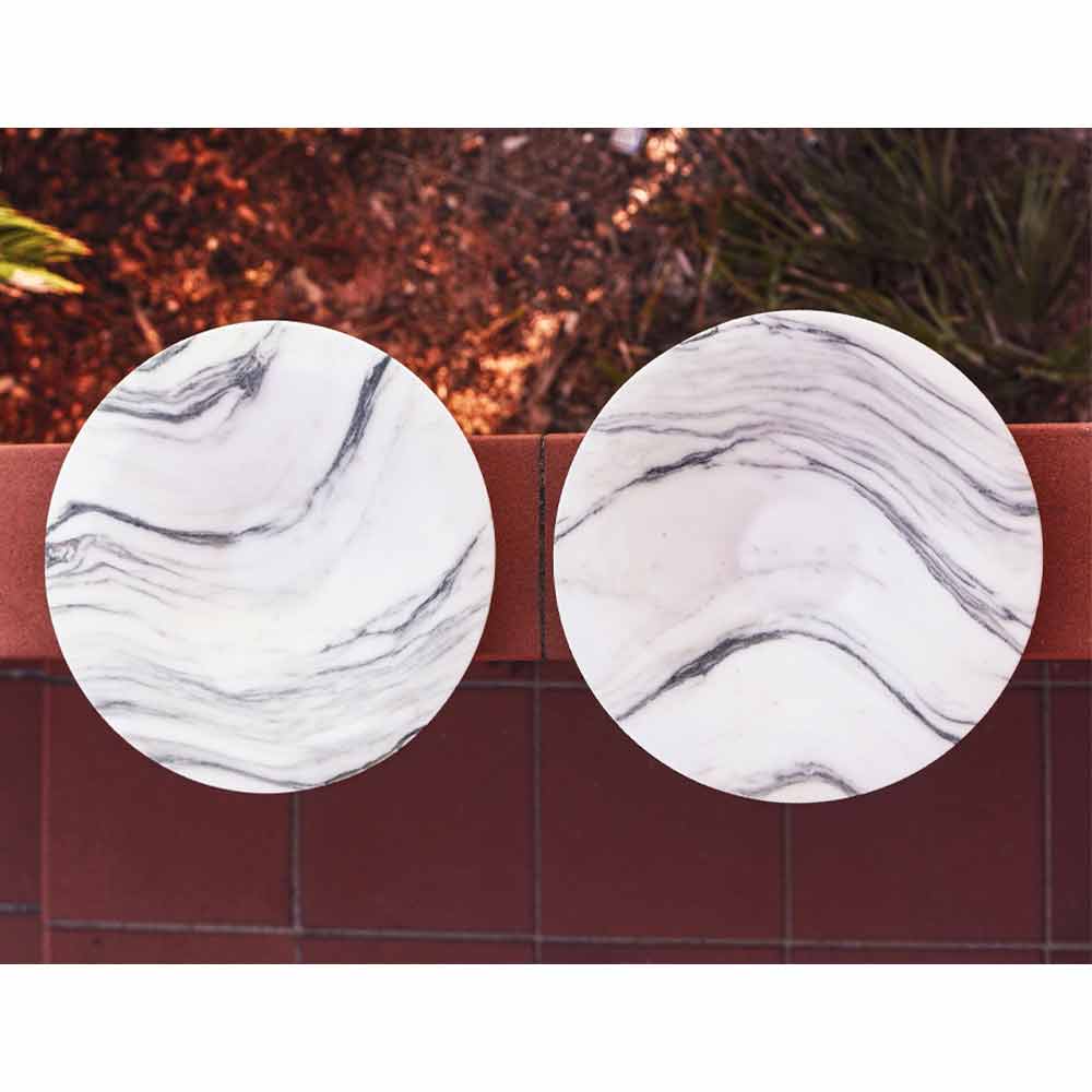 Madhësia: L 40 x P 40 x H 4 cm. Shënim : Meqenëse është një produkt i bërë me dorë, secili artikull duhet të konsiderohet si njëcopëunike dhe ekskluzive, e ndryshme nga të tjerat. Hijet dhe venat e mermerit janë gjithmonë të ndryshme dhe varen nga blloku i gurit natyror që përdoret. Për këtë, mund të ketë ndryshime nga fotoja e treguar.