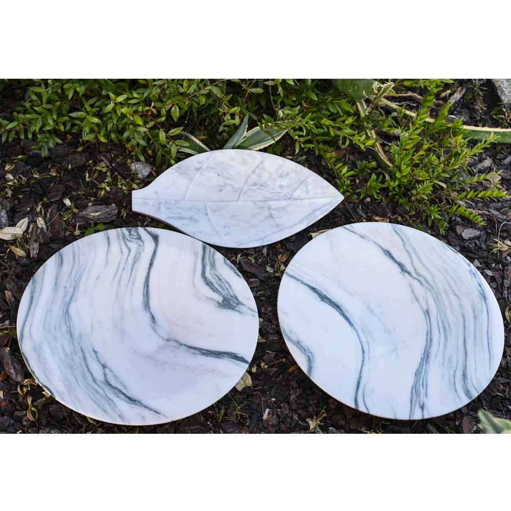 Pjesa qendrore e karakterizuar nga një dizajn i sofistikuar dhe forma e gjetheve të saj me vija të sinqerta dhe të thjeshta , por me një ndikim të fortë vizual. Punuar me dorë në Itali në mermer Arabescato , një material që i jep produktit stilin e tij të mrekullueshëm të sofistikuar dhe elegant, ideal për zbukurimin e dhomave më të larmishme të shtëpisë. Kombinimi i materialeve, përfundimeve dhe teknikave të përdorura së bashku me punën e mrekullueshme të mjeshtrit mjeshtër lejojnë të merrni një produkt përfundimtar me cilësi të lartë me vëmendje në detaje dhe perfekt për zbukurimin e mjediseve me një shije bashkëkohore dhe të sofistikuar.
