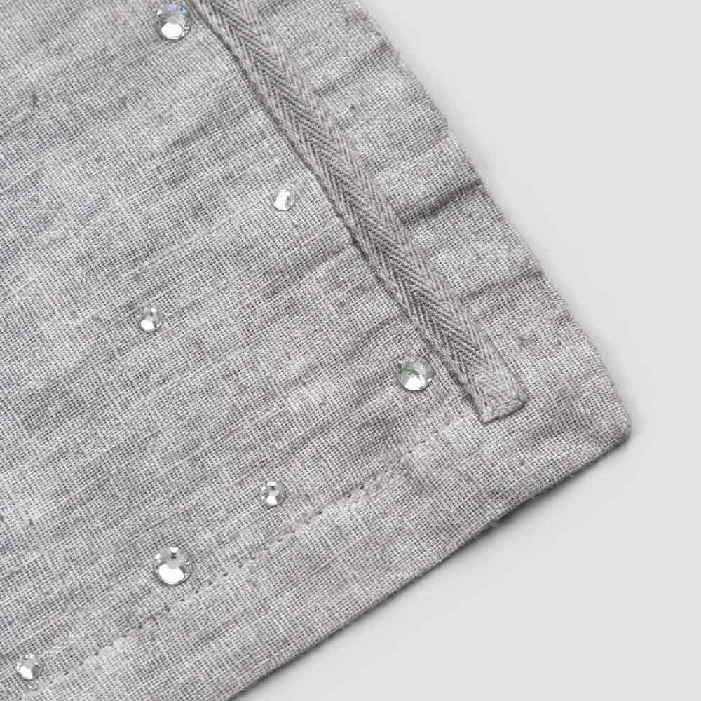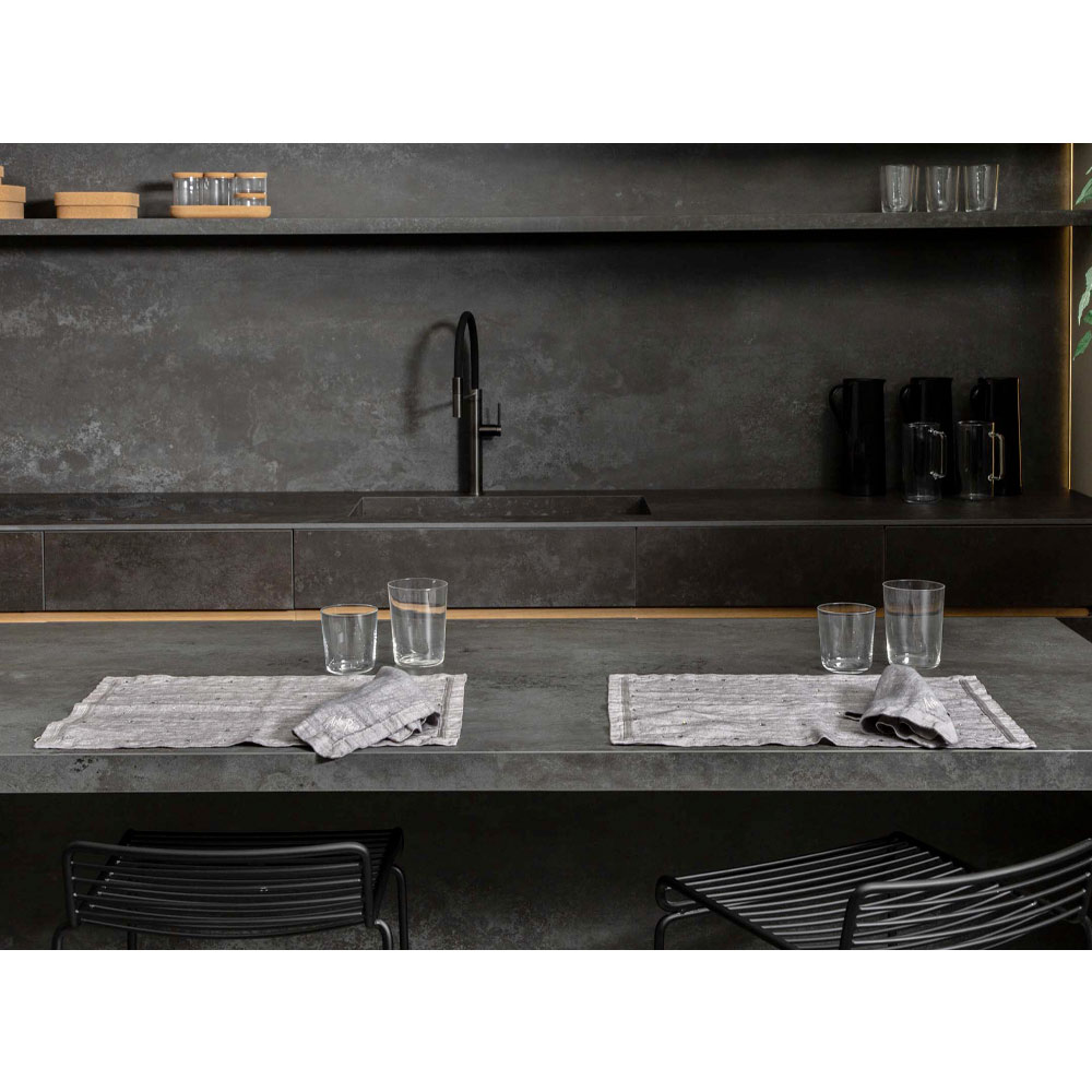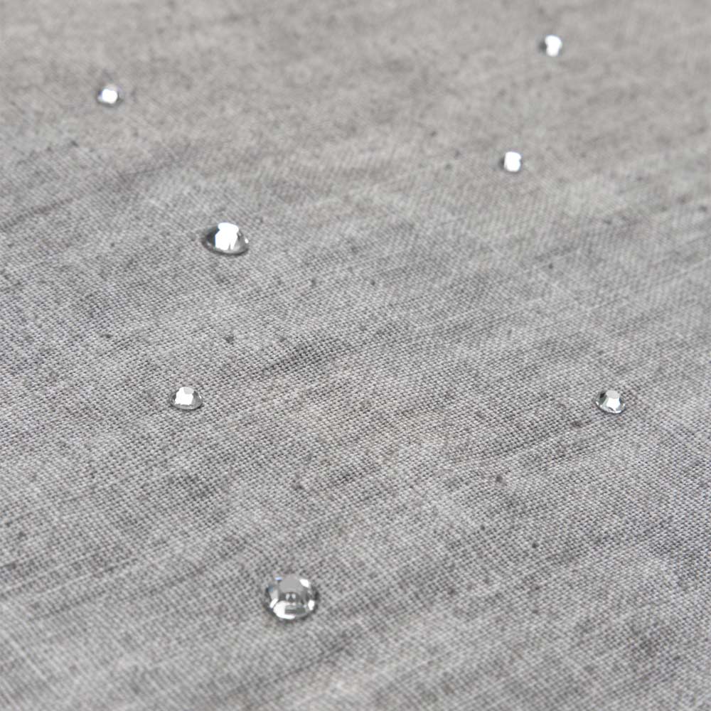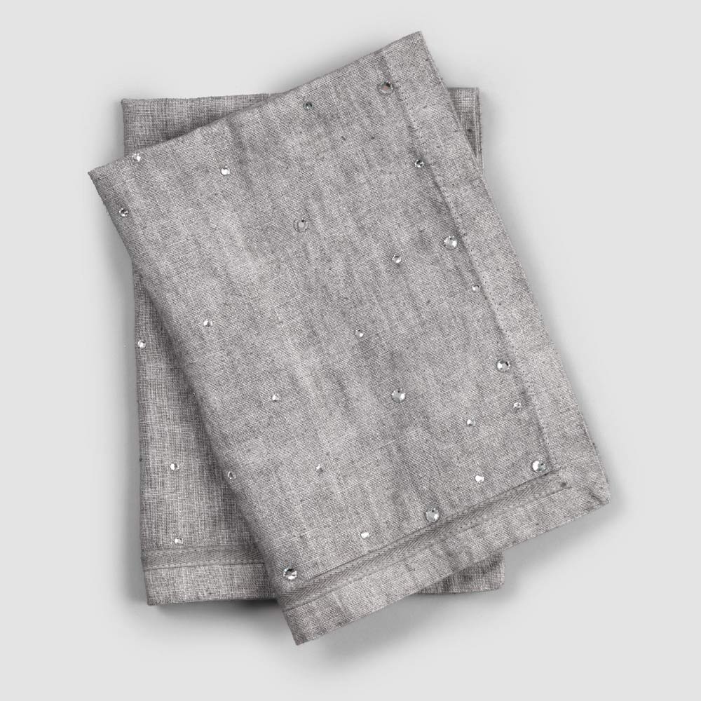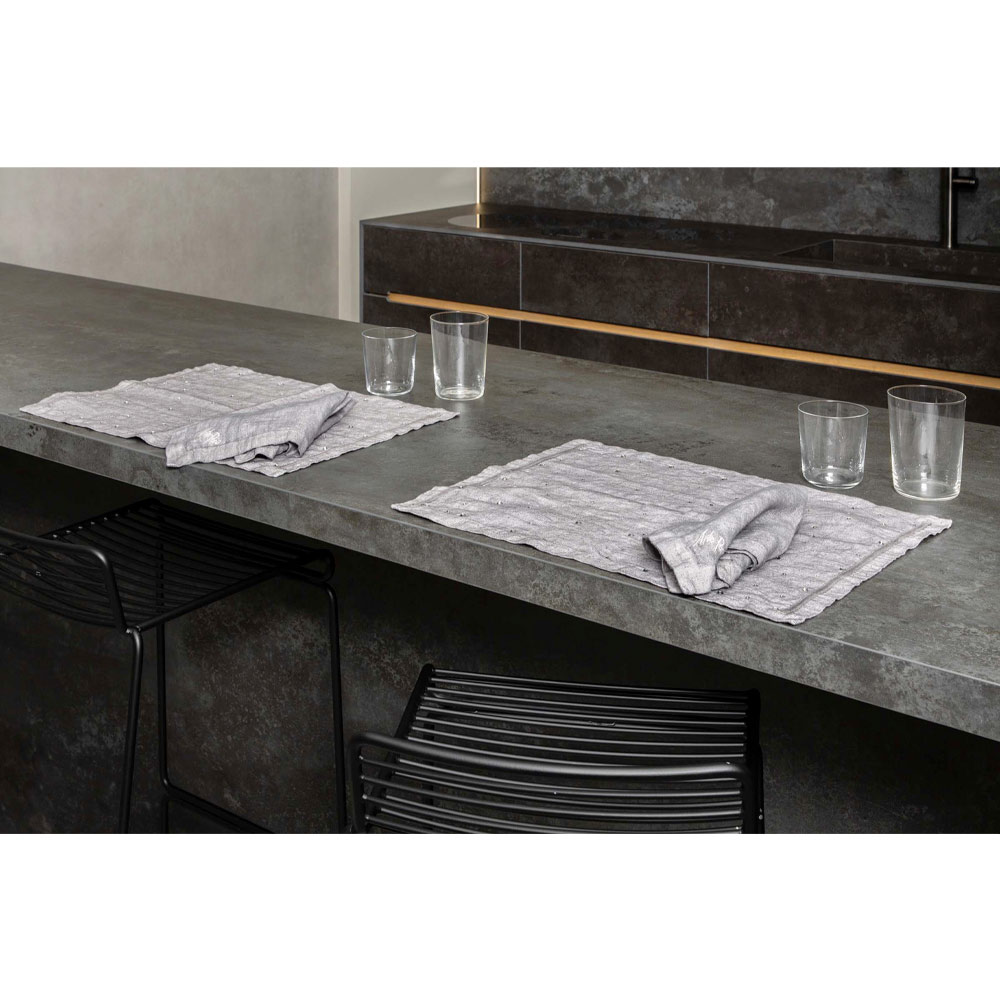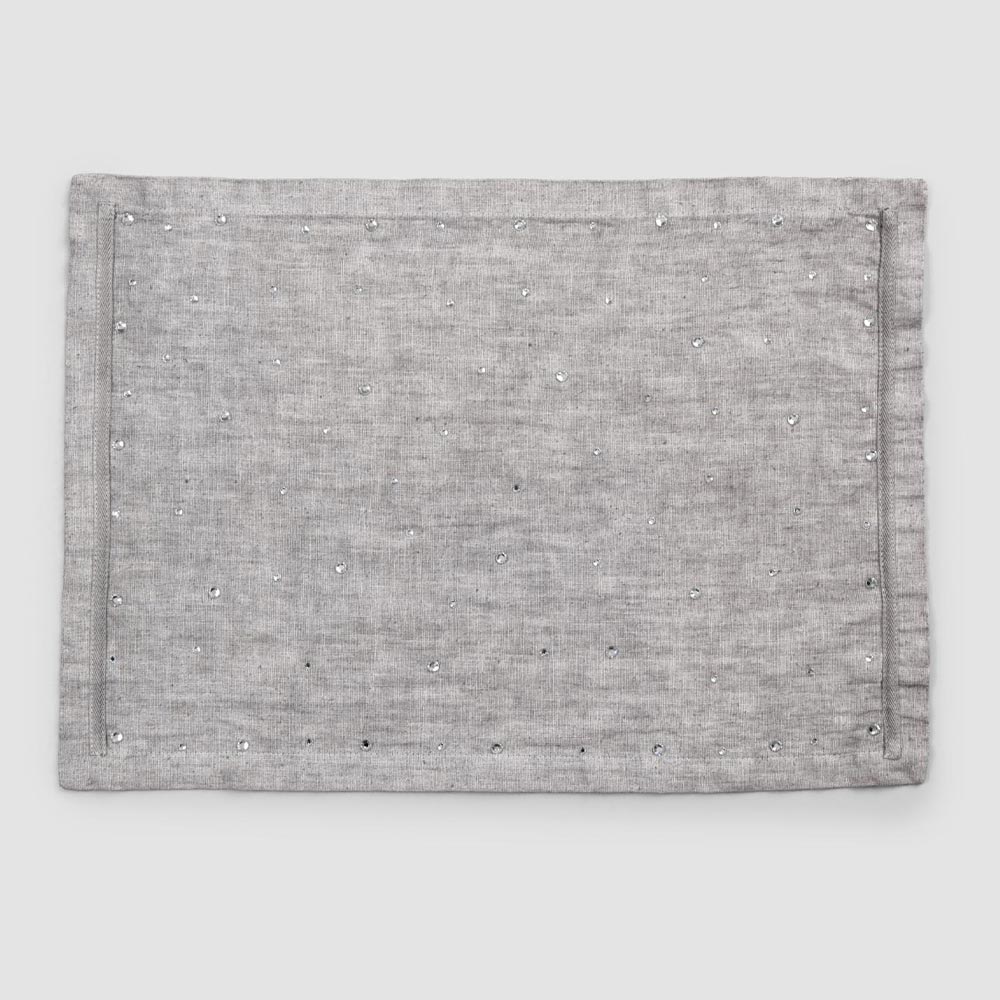 Vlera e traditës bashkohet me stilin e jetës moderne me këto plaçemata amerikane në liri gri antracite të zbukuruar me kristale dhe buzë të palosur. Bërë prej liri 100% me cilësi të lartë dhe i butë në prekje falë trajtimeve të veçanta që rrisin pamjen e saj natyrale. Pëlhura është ideale për tryezën sepse është hipoalergjike dhe antibakteriale , përveç përdorimit të ngjyrave natyrale dhe hipoalergjike që i japin asaj shkëlqim dhe dhembshuri. Lehtësia , liria, eleganca dhe pastërtia janë fjalët kryesore që përmbahen në këtë produkt me një bukuri fisnike dhe pëlhurë të hollë .
