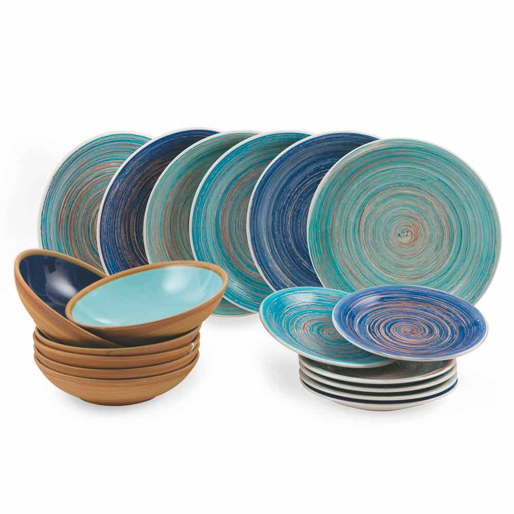 Enët shumëngjyrëshe dhe moderne prej 18 copë guri, shërbim i plotë i tryezës