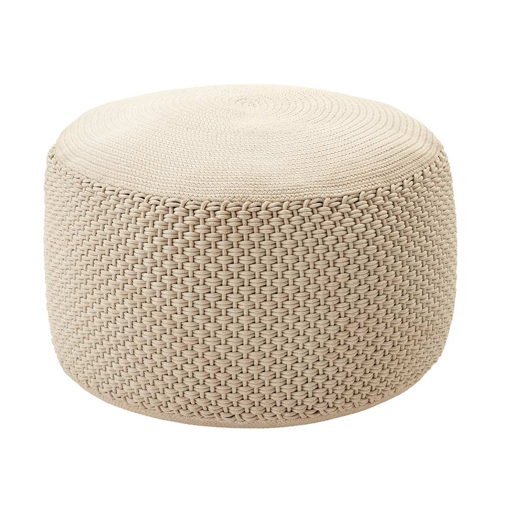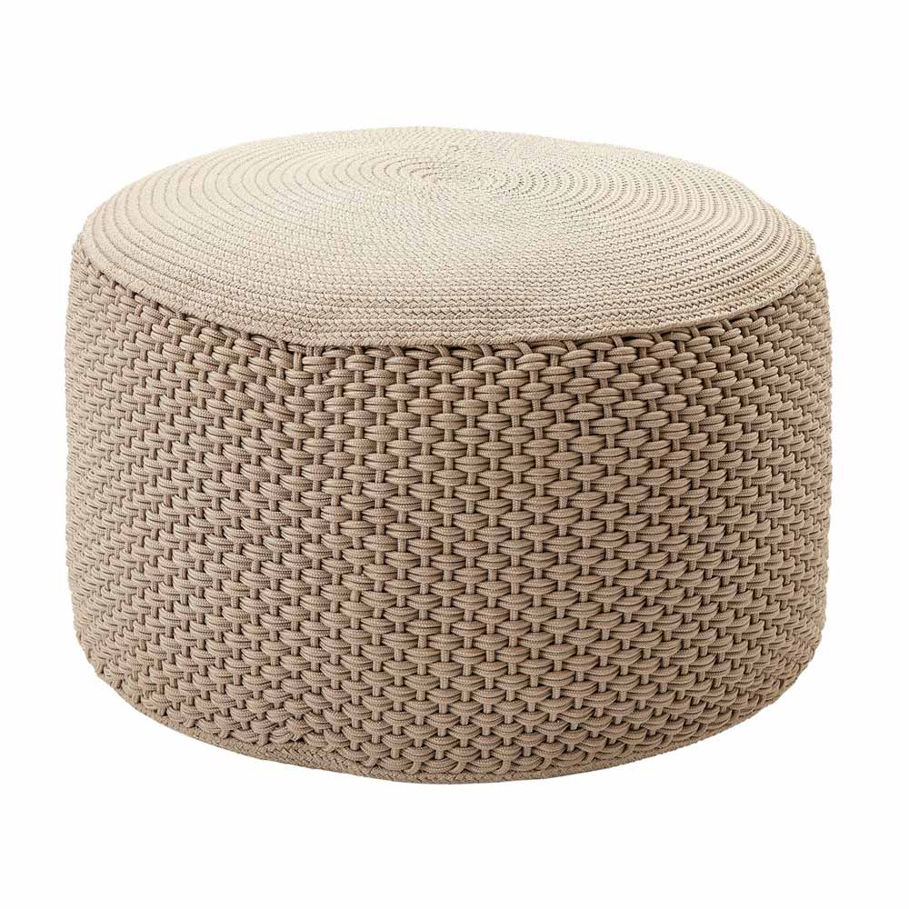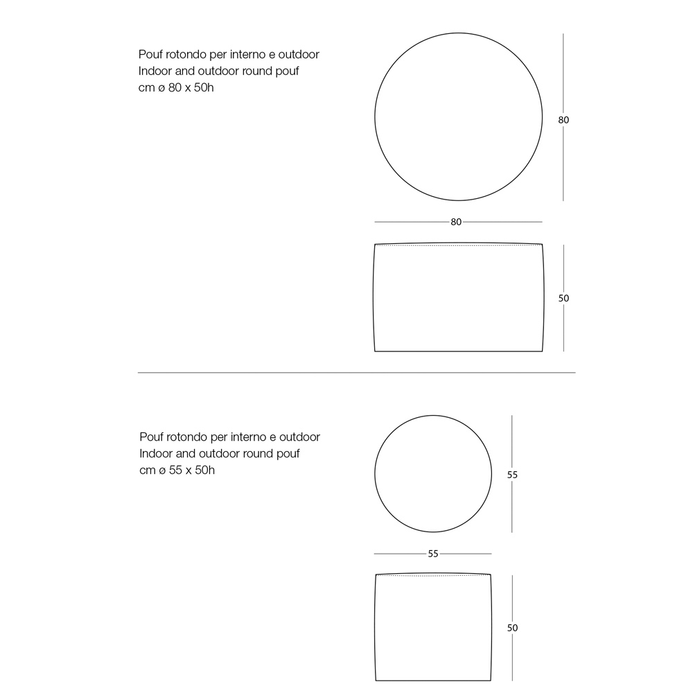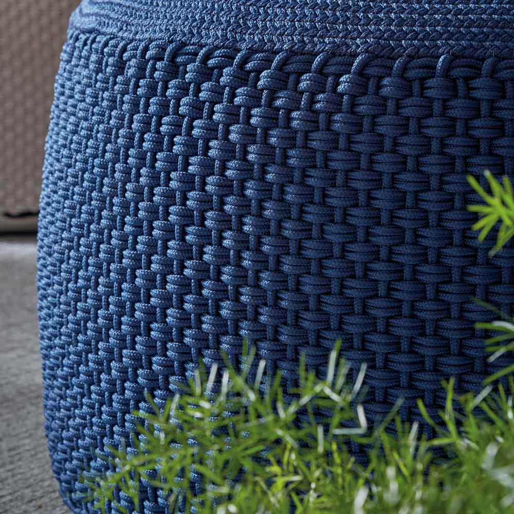 Pufë osmane e rrumbullakët për përdorim të brendshëm ose të jashtëm në fije poliestër blu, gri pëllumbi ose kërpi, artikull cilësor i prodhuar në Itali.