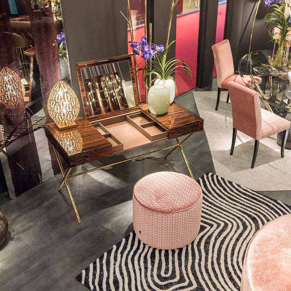 Pouffe me dizajn modern Belle 1, me tapiceri pëlhure. Pouffe Design krijuar nga stilisti Giorgio Ragazzini. Karakterizohet nga një stil deco frymëzuar nga Belle Époque dhe nga shpirti bohem i lindur në Francë në fund të shekullit XIX.