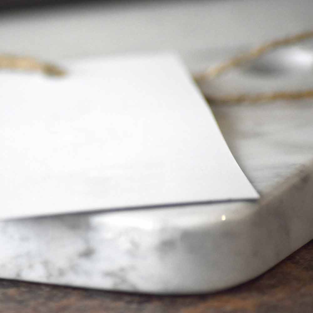 Dërrasë prerëse drejtkëndëshe e bërë nga mermeri i bardhë Carrara Prodhuar në Itali.