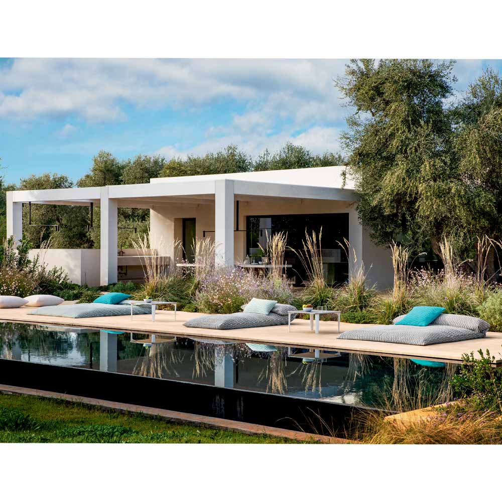 Dizajnoni derdhje të jashtme të ditës, krevat dopio në PVC dhe PES në dy ngjyra të prodhuara në Itali.