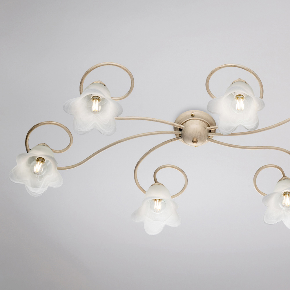 Materialet e përzgjedhura me kujdes - hekuri dhe qelqi - japin një efekt elegant dhe një dalje të këndshme drite. I prodhuar tërësisht në Itali, ky ndriçues tavani është rezultat i një mjeshtërie të kujdesshme që përmirëson si estetikën ashtu edhe funksionalitetin.