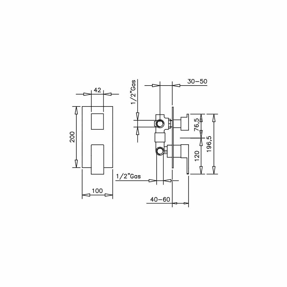 Mikser dushi i integruar me diverter 3-kahësh i kompletuar me pjesë të integruara dhe pjesë të jashtme. Prodhuar tërësisht në tunxh në Itali me materiale të cilësisë së lartë në përputhje me standardet evropiane.