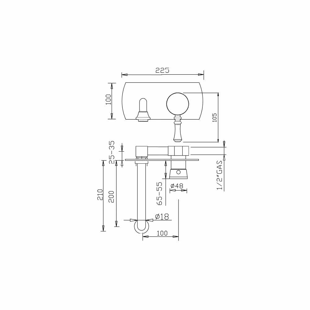 Mikser legeni i montuar në mur i kompletuar me pjesë të integruara dhe pjesë të jashtme, me pllakë të vetme. Pa shter. Prodhuar tërësisht në tunxh në Itali me materiale cilësore të shkëlqyera në përputhje me standardet evropiane.