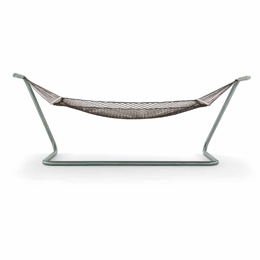 Hamak në rrjetë kopsht të zi me piedestal, dizajn modern i prodhuar në Itali.