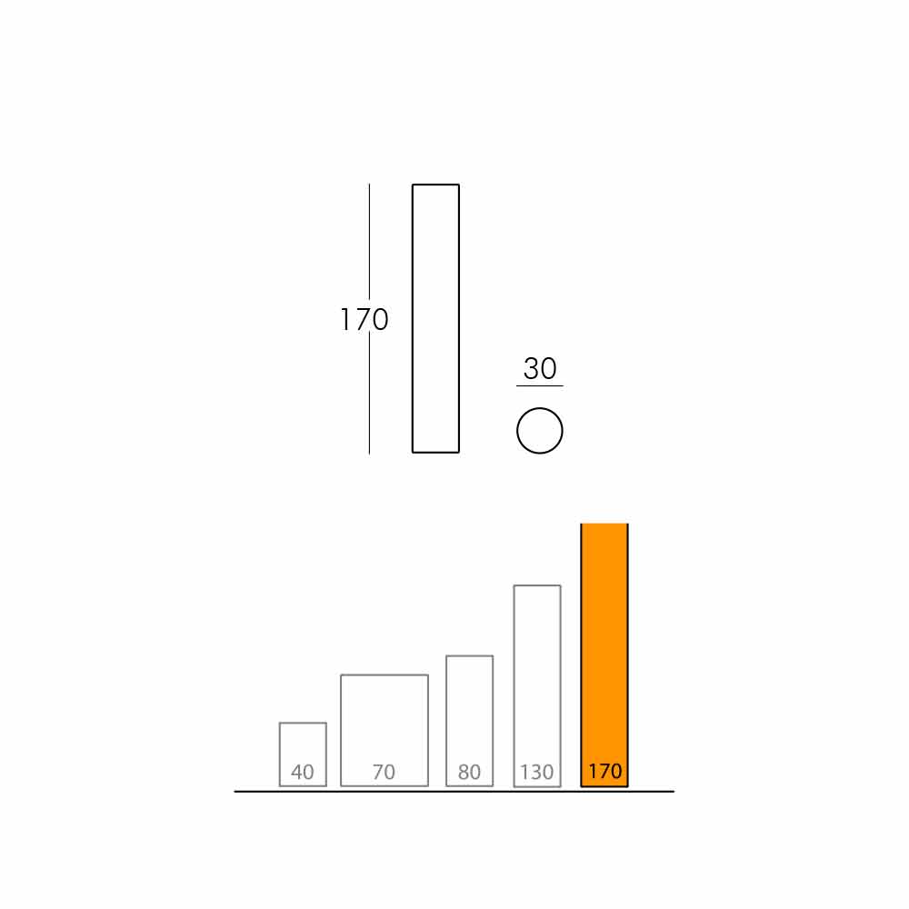 | Llambë rekomande | 1 x tub i udhëhequr 10 W për H 80 cm / 1 x tub i udhëhequr 18 W për H 130 cm / 1 x tub i udhëhequr 22 W për H 170 cm |