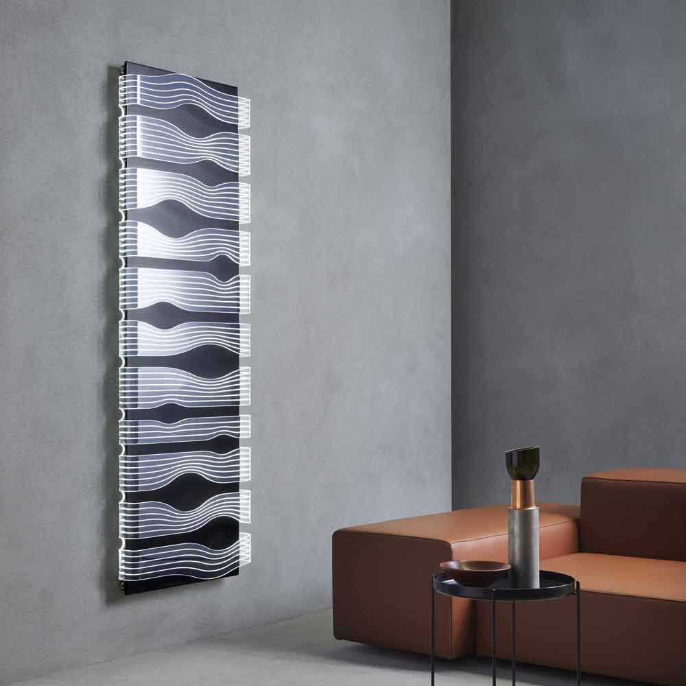 radiator në çelik karboni dhe metakrilat me dritë LED të përshtatshme për ambiente bashkëkohore, i bërë