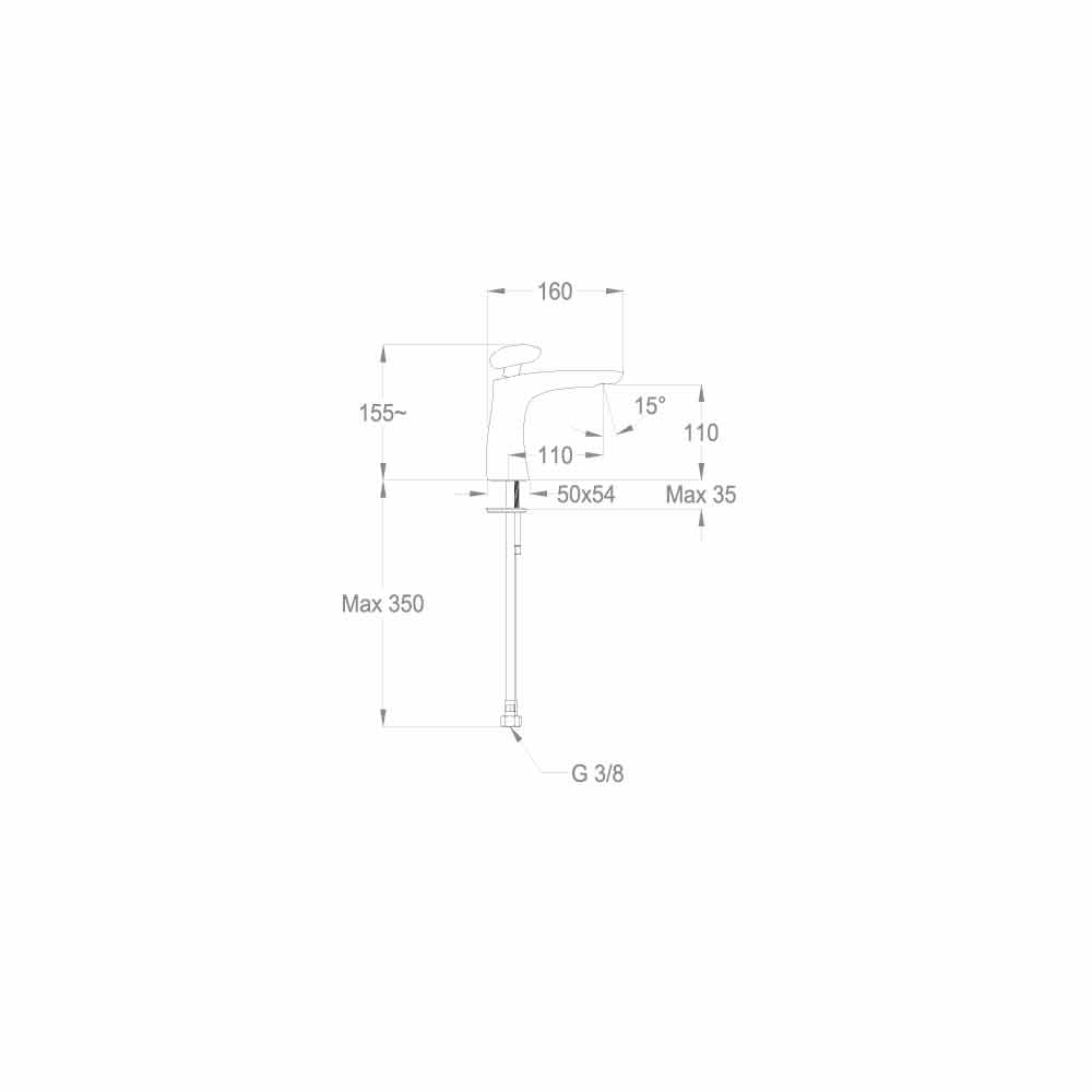 Mixer pellgu countertop me dizajn ultra modern dhe avangardë të lartë 155 mm dhe me një distancë qendrore 110 mm. Prodhuar tërësisht në Itali me materiale me cilësi të lartë në përputhje me standardet evropiane. Ky mikser është instaluar në pjesën e sipërme, i pajisur me aerator cache dhe fishek disk qeramik; rekomandohet për sistemin e tij të Kursimit të Energjisë për kursimin e ujit prej 6L / min dhe për lidhjet e tij fleksibile.