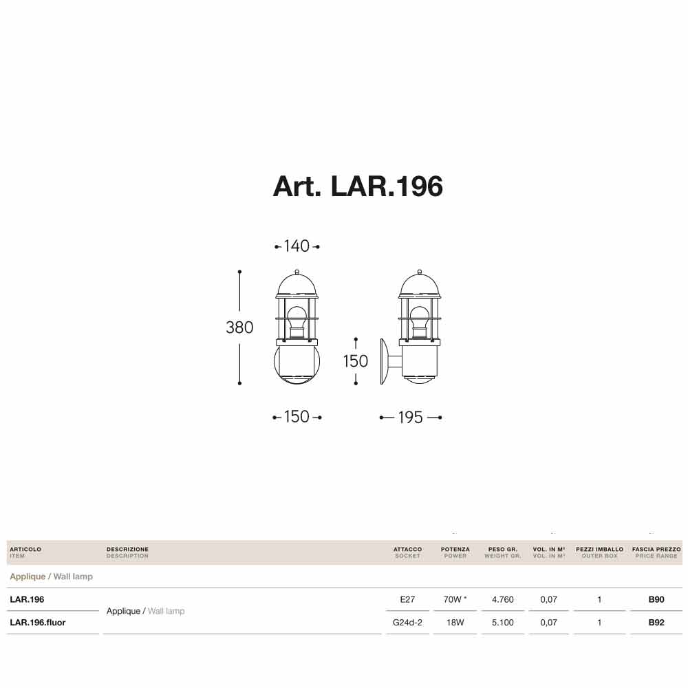 Ky artikull nuk mund të shitet në SHBA. Prodhuesi i jashtëm i mureve Attila nga Aldo Bernardi, i bërë prej bakri antik dhe bronzi antik, IP 44.