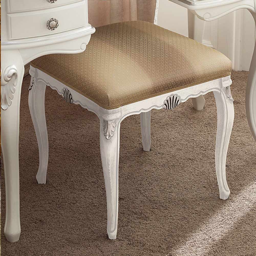 Pouf i stilit klasik i bërë prej druri, i mbushur dhe i mbuluar me pëlhurë , i disponueshëm me dekorime druri arre Bassano me detaje ari antike ose detaje prej druri të bardhë dhe argjendi. Një komplement unik dhe i rafinuar, i bërë tërësisht në Itali nga mjeshtra të aftë , mjeshtër të artit që përfundojnë çdo komplement me mençuri dhe shije për elegancë. Prodhimi kryhet duke përdorur materiale të shkëlqyera , dhe duke kryer punënmedorë me kujdesin dhe profesionalizmin maksimal që i dallon produktet Made in Italy .