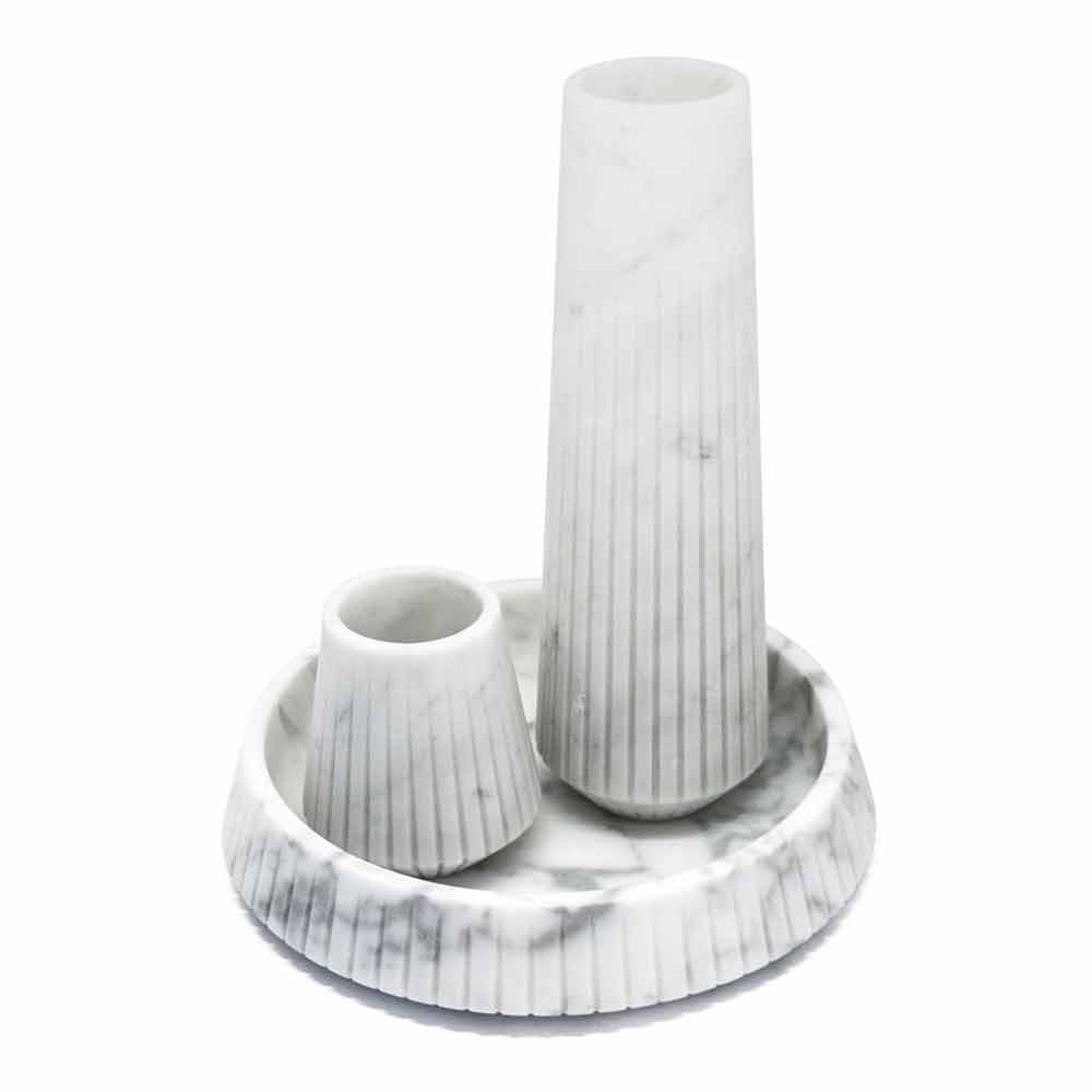 Pjesë qendrore e bërë plotësisht me mermer Carrara me cilësi të lartë. Isshtë një copë unike pasi çdo bllok mermeri i përdorur ndryshon nga të tjerët për venat dhe nuancat. Mermeri i bardhë vjen nga gurorja Poggio Silvestre, një burim imermerit të bardhë tëcilësisësëparë të klasifikuar që nga shekulli i kaluar. Produkt i punuar me dorë nga profesionistëe specializuar për breza në përpunimin e mermerit.