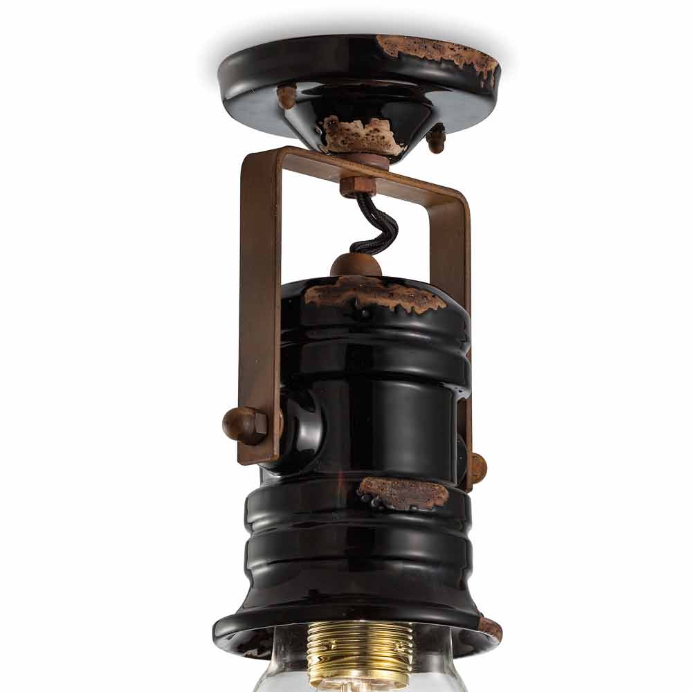 Bryanna qeramike, qelqi dhe metali në qendër të vëmendjes Bryanna është një qendër fantastike tavani, me një stil country-vintage. Llamba tavani e punuar me dorë nga artizanë të aftë në Itali. Bryanna është një llambë origjinale me tipare të çrregullta, është një kombinim i qeramikës, qelqit dhe metalit, një bashkim që e bën atë unik në llojin e vet. Falë xhamit me shkëlqim, drita përhapet gjerësisht dhe ndriçon të gjithë dhomën në të cilën është futur. Efekti i lënë pas dore i sipërfaqeve është një detaj i dëshiruar i marrë përmes hapave të saktë teknikë. Falë përdorimit të glazurave që mund t'i japin sipërfaqes një aspekt të gjallë të prekshëm dhe vizual dhe ngjyrave retro, duket sikur koha e kishte shënuar rrugën e saj në vetë llambën. Një dizajn që i kundërvihet luksit por që bashkëjeton në harmoni me të. Ideale për ambiente me stil urban dhe shije vintage. Detaje të vogla për një efekt të shkëlqyer me një aromë antike! Sillni një prekje të dizajnit në shtëpinë tuaj! Llamba e disponueshme në përfundime të ndryshme. Kontrolloni tabelën e ngjyrave dhe vendosni kodin e përfundimit që dëshironi në kutinë e duhur!