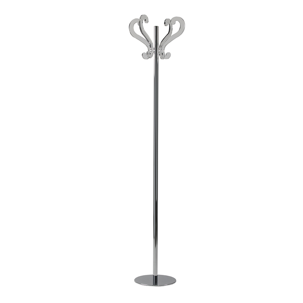 Qëndrim pallto çeliku me 4 krahë në kristal akrilik transparent të prodhuar në Itali.