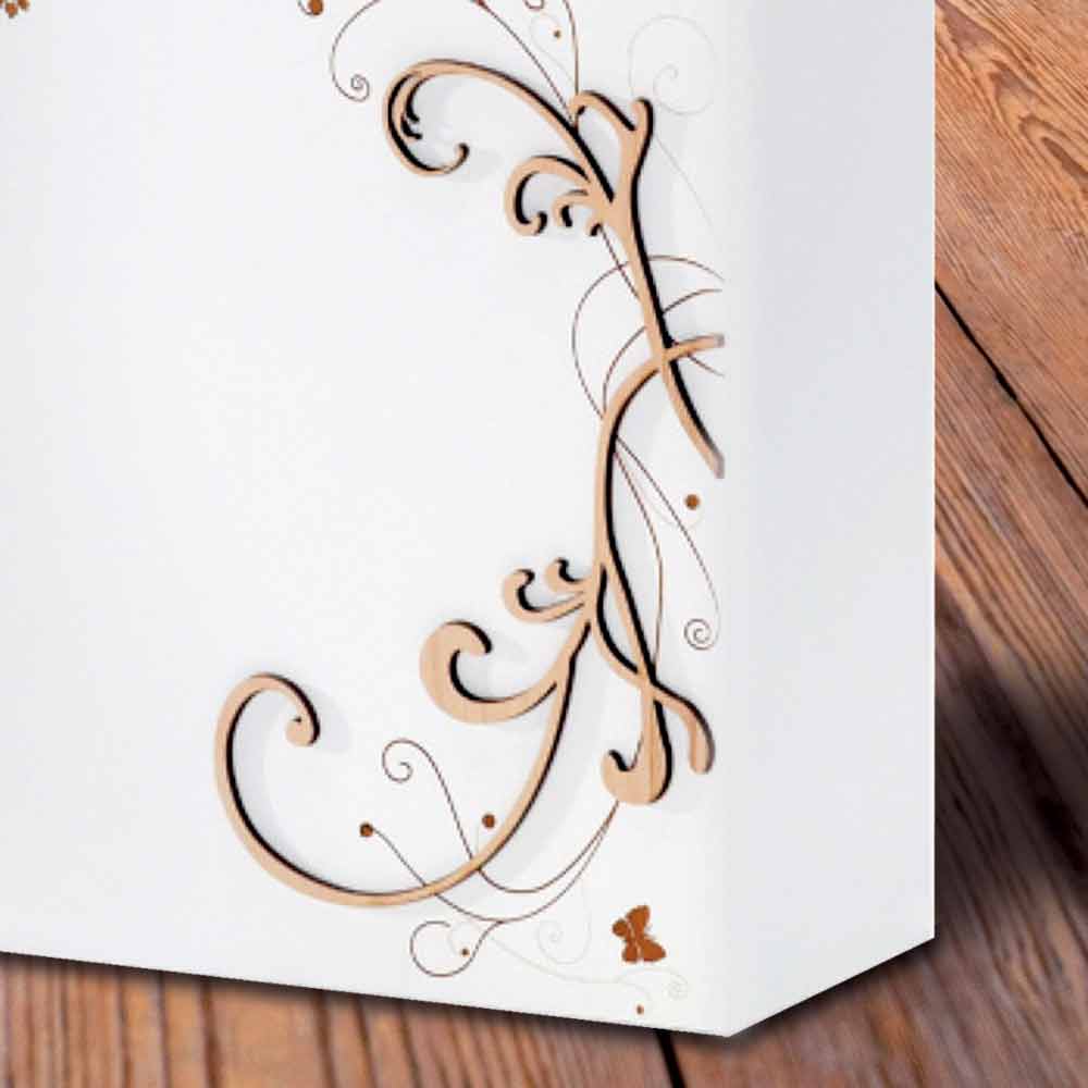 Dru i llakuar me prerje lazer me aplikim dekorativ prej druri