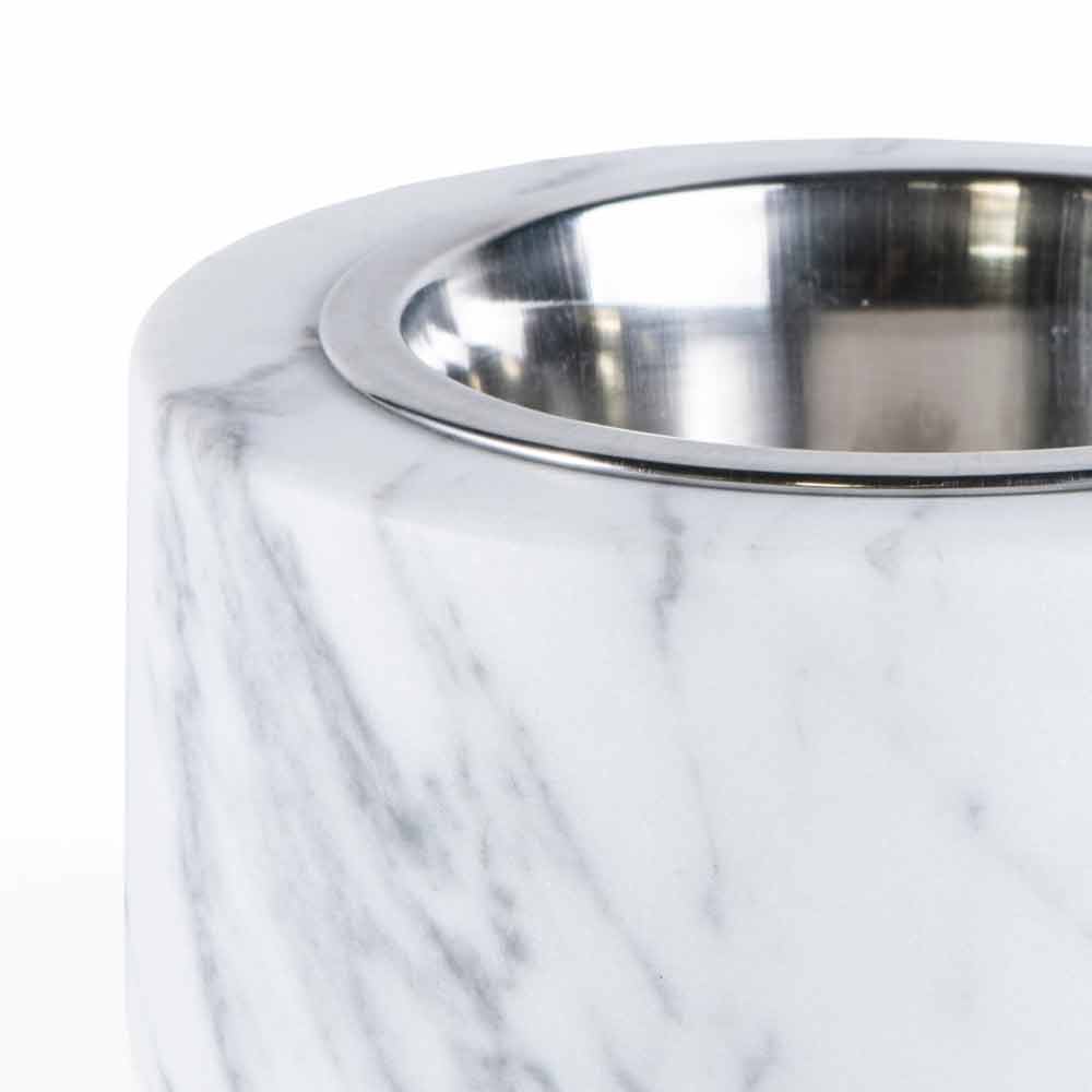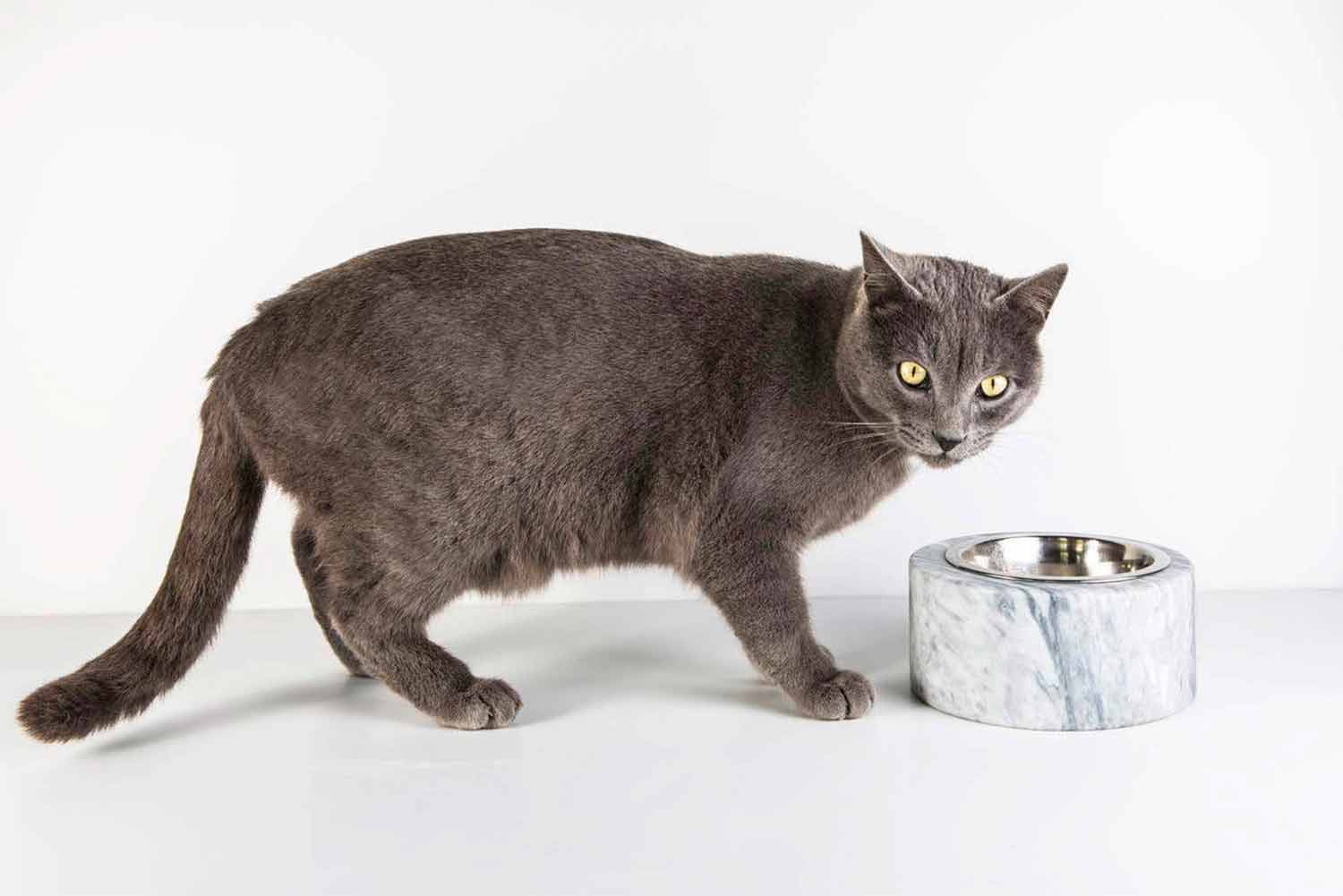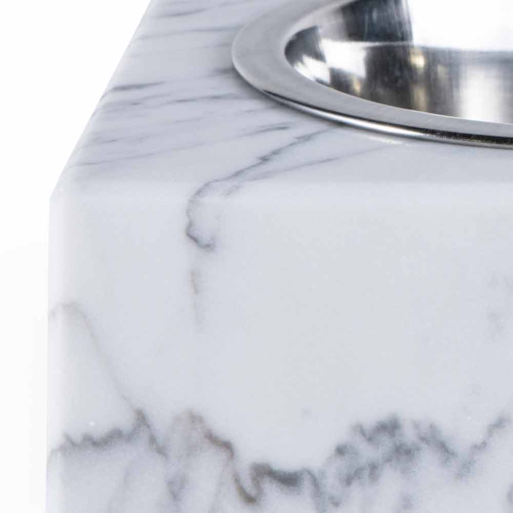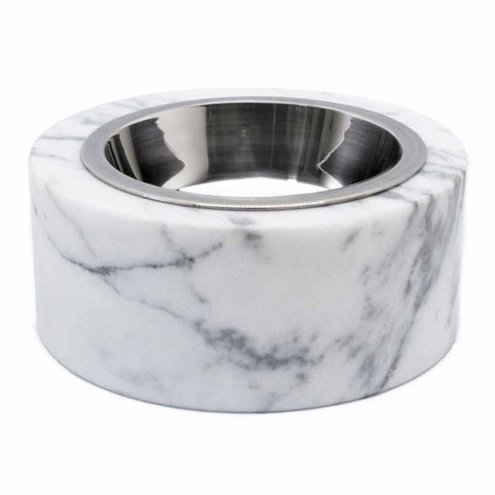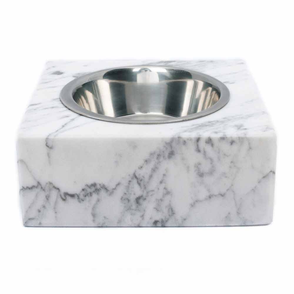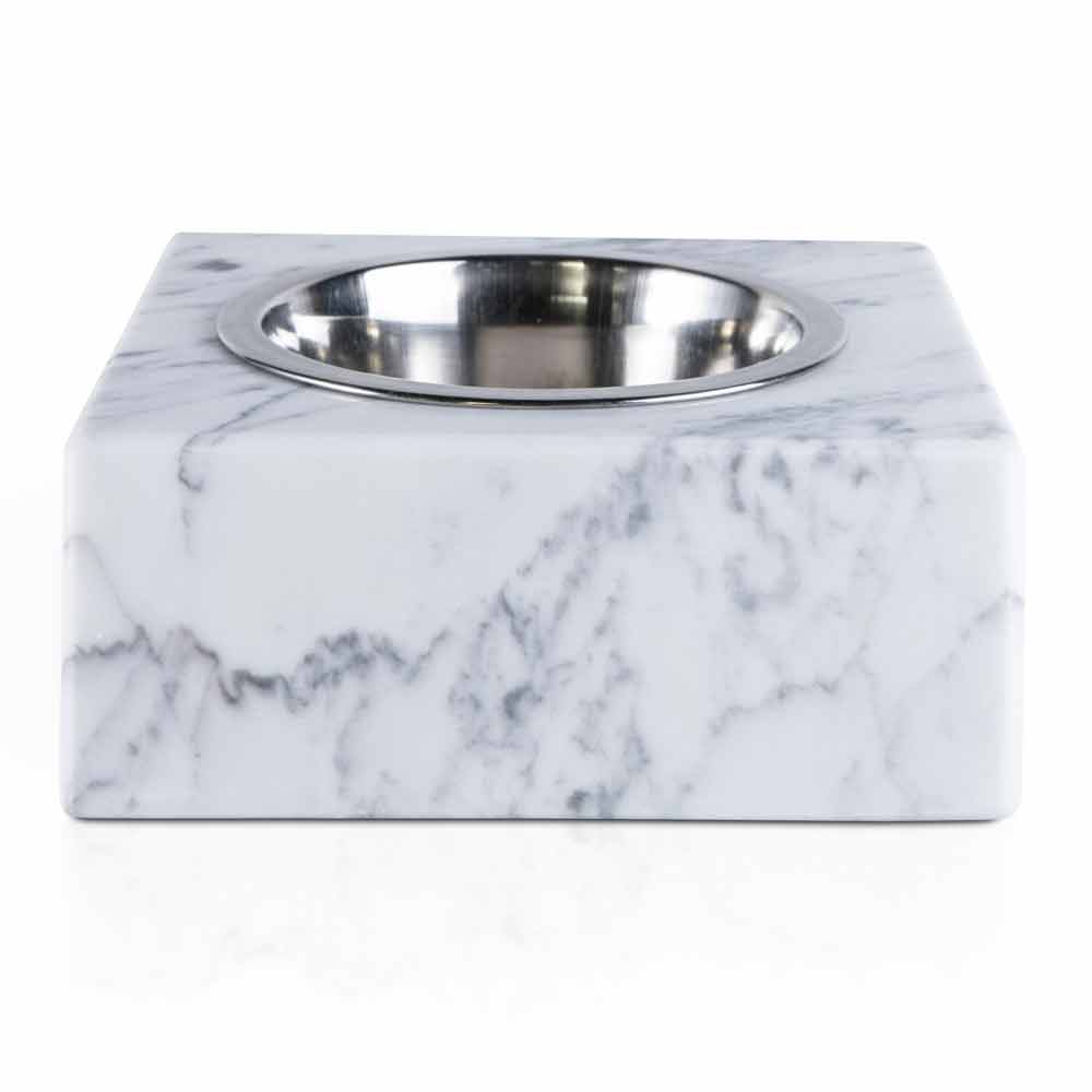 Tas për qen dhe mace karakterizuar nga mermeri i bardhë Carrara nga i cili është i përbërë. Isshtë një copë unike pasi çdo bllok mermeri i përdorur ndryshon nga të tjerët për venat dhe nuancat.
