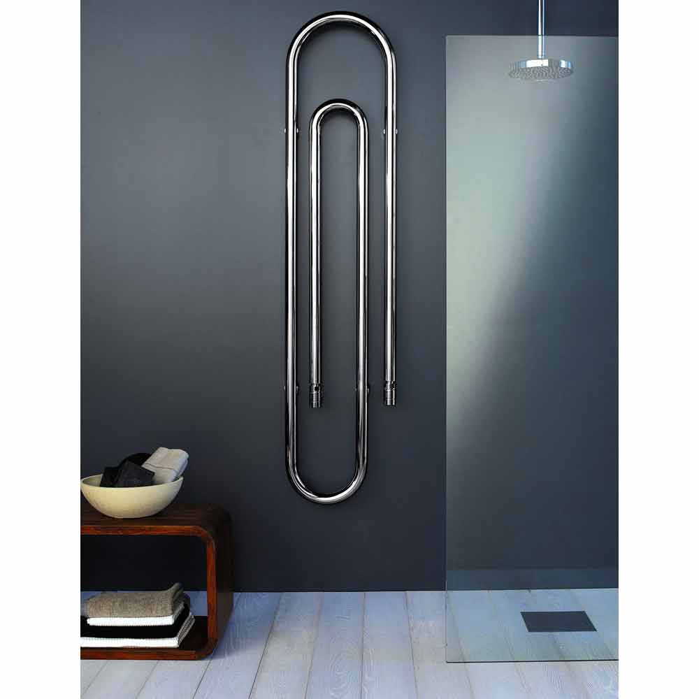 Radiator hidraulik i dizajnit graffe me finiturë kromi nga Scirocco H Radiator në formën e kapëses horizontale të kromuar, në versionin hidraulik, me një dizajn modern dhe argëtues. Tema është zgjerimi i formës së objekteve të përditshme dhe ndryshimi i funksionit të tyre në një lojë njohjeje dhe kënaqësie të menjëhershme. E disponueshme në madhësi të ndryshme, zgjidhni atë që ju përshtatet më së miri!