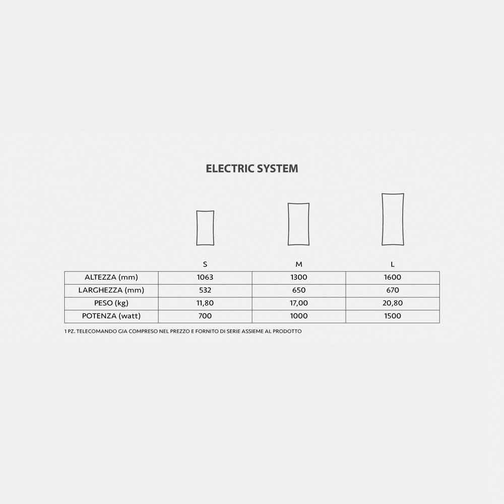 Ky radiator elektrik përmban teknologjinë më të avancuar, e cila i lejon vetë produktit të kuptojë mënyrën më korrekte të ngrohjes së mjedisit, duke shmangur humbjen e energjisë , duke mbajtur temperaturën e sipërfaqes së produktit në minimum dhe duke u kyçur automatikisht përballë ndryshimeve të papritura. . temperatura brenda dhomës. Përveç kësaj, ky radiator është i kompletuar me një sistem kontrolli të gjeneratës së fundit TOUCH SCREEN i cili lejon, në kombinim me telekomandën me ekran LCD, të optimizoni performancën. Termostati i programueshëm ditor dhe javor ju lejon të programoni ndezjen dhe fikjen për ngrohje fleksibël dhe sa më të përshtatshme për nevojat e përdoruesit përfundimtar. Për më tepër, tre mënyrat e paracaktuara të temperaturës ju lejojnë të zgjidhni mënyrën më të përshtatshme të ngrohjes për situatën bazuar në madhësinë e dhomës dhe temperaturën që dëshironi, duke shmangur humbjen e energjisë.