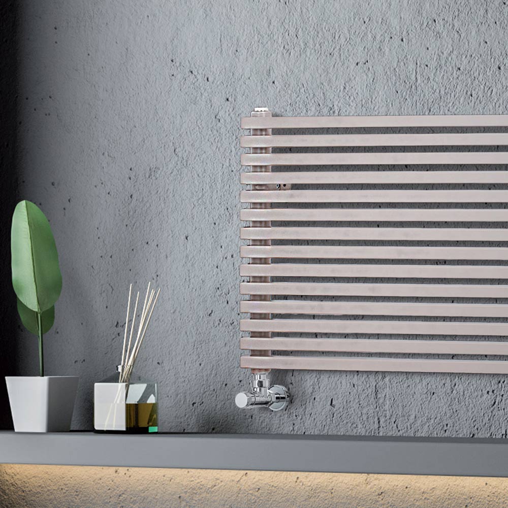 Radiator hidraulik prej çeliku karboni me finiturë ngjyrë bezhë gri i përbërë nga një seri elementësh horizontale me një seksion katror 2 cm të salduar në kolektorë vertikalë me diametër 3,5 cm. Prodhuar tërësisht në Itali me komplet për fiksimin e murit, valvulën e ventilimit dhe spinën e verbër të përfshirë . Kërkimi për krijimin e këtij elementi është 100% i cilësisë Made in Italy , i cili kryhet në një fabrikë në Treviso, pak kilometra larg Venecias. Këtu funksionaliteti, profesionalizmi dhe mjeshtëria ndiqen për të krijuar një ekuilibër midis dizajnit, prakticitetit dhe efikasitetit.