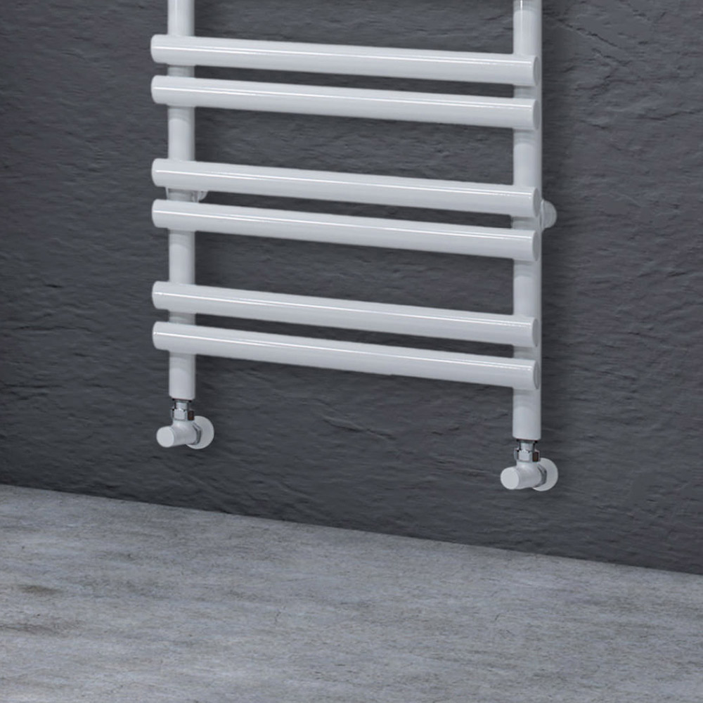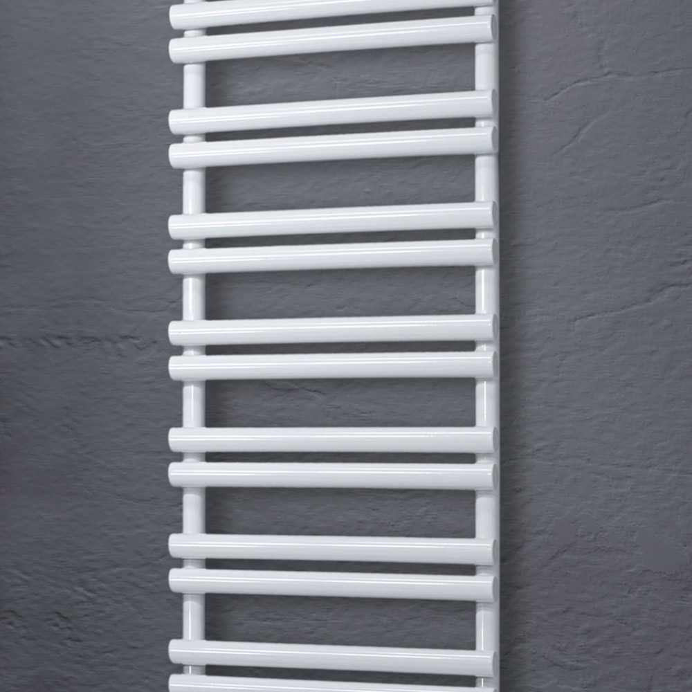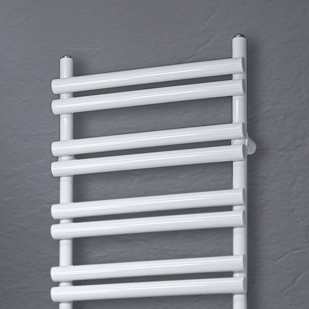 Ngrohëse hidraulike e peshqirëve në çelik karboni me një fund të pastër të bardhë me shkëlqim, i përbërë nga një seri elementësh horizontale me diametër 3,5 cm të salduara në kolektorë vertikalë me diametër 3,5 cm, tërësisht i prodhuar në Itali me pajisje për fiksimin e murit, valvul ventilimi dhe prizë të verbër përfshirë . Profesionalizmi, njohuria dhe ndjekja e inovacionit janë vlerat që janë ndjekur për të krijuar këtë produkt në një fabrikë në Treviso, pak kilometra larg Venecias për të garantuar një produkt cilësor 100% Made in Italy. Në këtë element , dizajni dhe funksionaliteti takohen për të ofruar një mobilje jo vetëm të bukur, por edhe të përdorshme dhe efikase.
