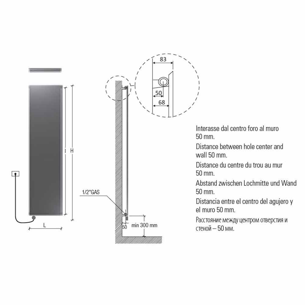 Përfshihet rezistenca elektrike me infra të kuqe të pajisur me telekomandë standarde, kabllo 1200 mm me prizë schuko dhe një shtesë glikoli për t'u përdorur si antifriz dhe frenues i ndryshkut për mbrojtjen e sistemit. Sipas kërkesës, rezistenca dixhitale elektrike dhe mbulesa e rezistencës në të njëjtën fund si radiatori janë në dispozicion; ose rezistencë vetëm në të majtë dhe futur vertikalisht në radiator dhe marrës të fshehur, termostat programues ditor / javor dhe marrës frekuence radio. Distanca në qendër mund të personalizohet sipas kërkesës me një distancë prej 50 mm që do të zgjidhet midis qendrës ose djathtas. Versioni me instalimin hidraulik të radiatorit është gjithashtu i disponueshëm. Na kontaktoni për një vlerësim.