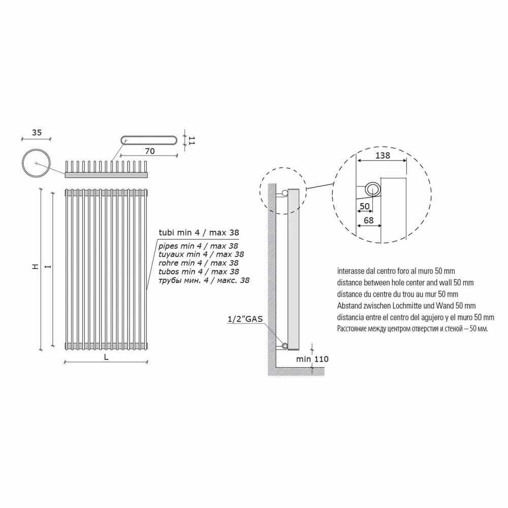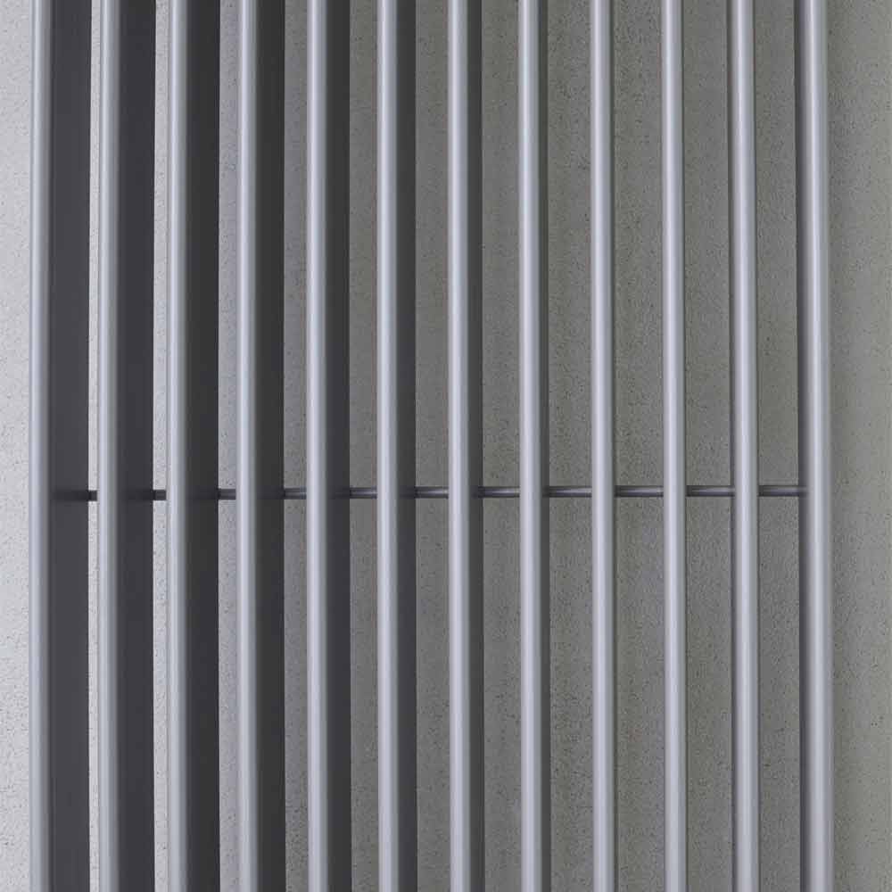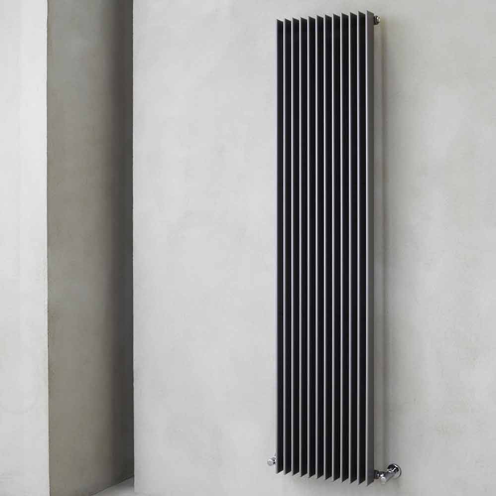 Radiator vertikal me tuba çeliku, dizajn modern i mureve dhe i prodhuar në Itali.