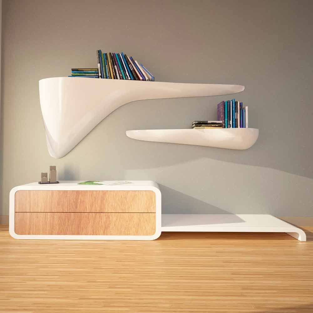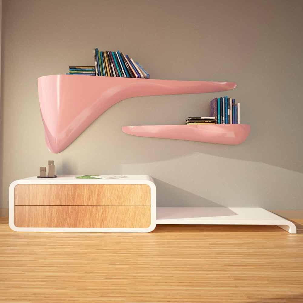 Raft me dizajn modern i prodhuar në Itali, Sizzano Sizzano është një raft me një formë të veçantë i bërë tërësisht nga Solid Surface®; perfekte për të dekoruar ambiente me origjinalitet dhe klas.