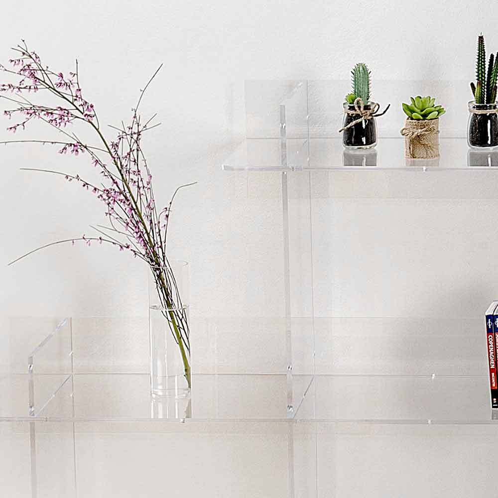 Raft i rafinuar i murit Sfera3, mbarim transparent, L180 x H180 x P30 cm Rafti i librave Sfera3 karakterizohet nga një dizajn minimal. Librat duken të lundrojnë në zbrazëti. Shtë një raft librash i pavarur por mund të jetë i fiksuar në mur. Karakteristikat e pleksiglës (izolim termik i papërshkueshëm nga uji, i papërformueshëm, i pandryshueshëm, izolimi termik) e bëjnë këtë artikull një pjesë mobiljesh shumë të gjithanshme. Shkëlqimi dhe shkëlqimi i saj mbeten konstante dhe të pandryshuara me kalimin e kohës. Plexiglasa PMMA nga polimeret e virgjëra të përdorura është jo toksike, hipoallergjike, pa erë dhe anti-bakteriale. 100% e riciklueshme, përputhet me UNI EN 71-3: 200. Projektuar , zhvilluar dhe prodhuar nëItali me materiale italiane .
