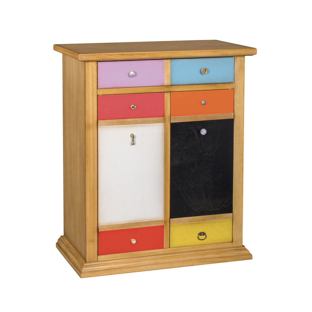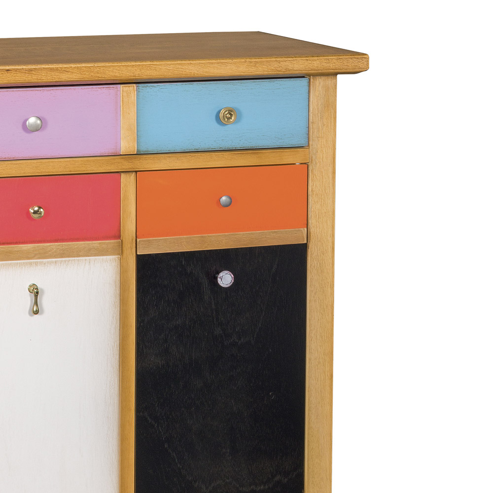Made in Italy. Gëzimi dhe loja janë karakteristikat që e përshkruajnë këtë element me ngjyra të forta të ndezura dhe forma të veçanta të dorezave. Një riinterpretim origjinal i një mobilie me