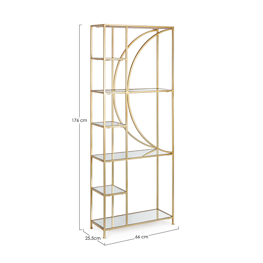 Ky raft librash i pavarurpërmban një kornizë çeliku të veshur me pluhur epoksid dhe rafte xhami . Është një dizajn bashkëkohor dhe minimal me linja gjeometrike thelbësore, për atmosfera të rafinuara dhe elegante.