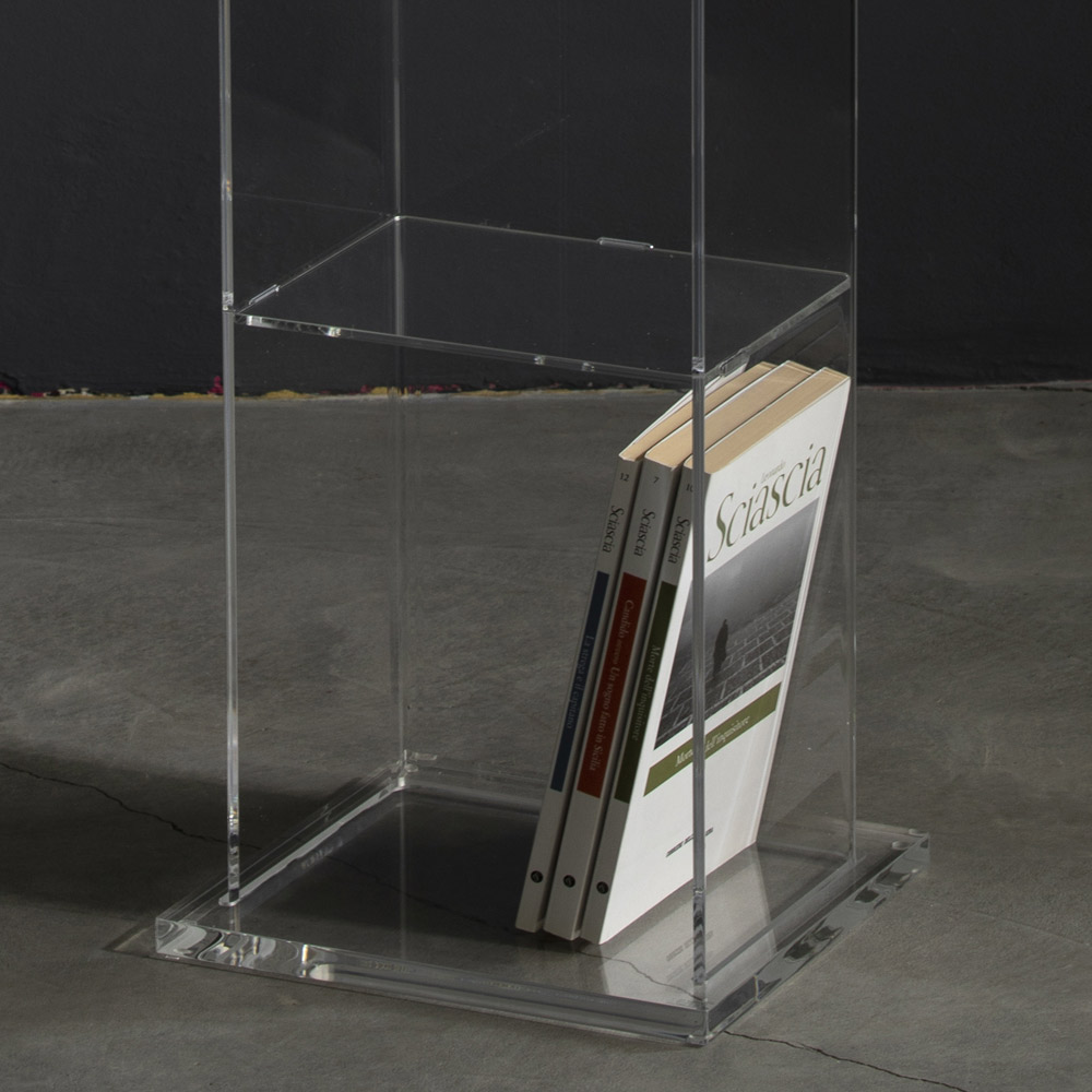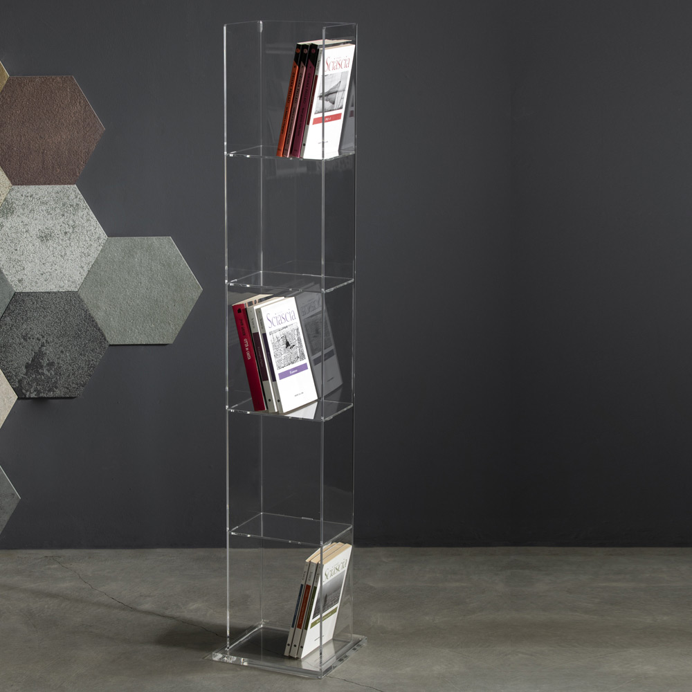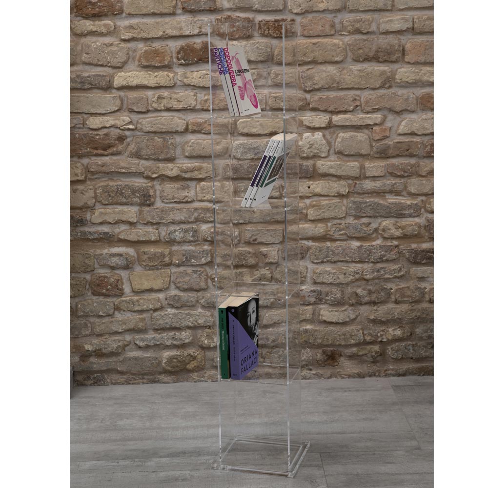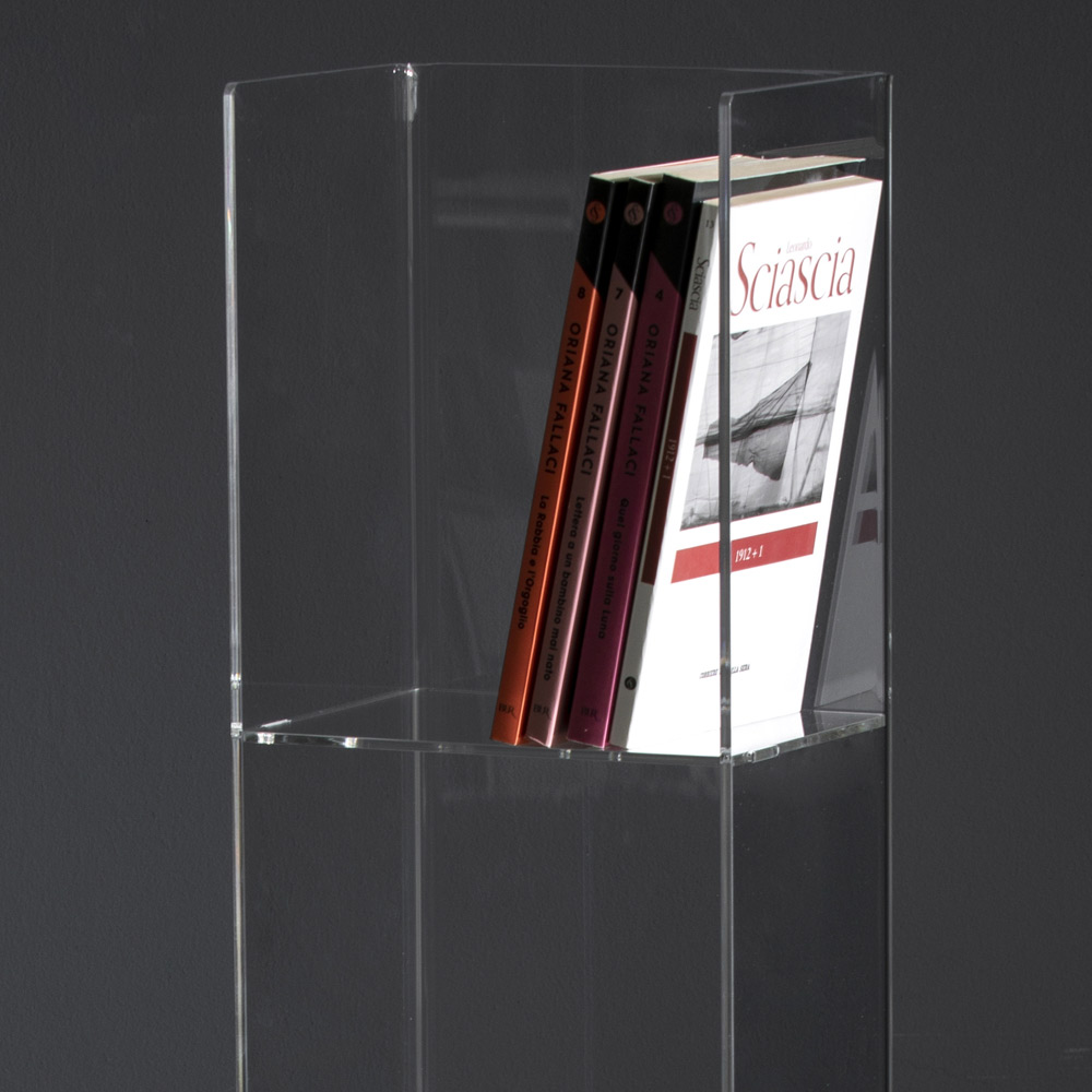 Raft librash në këmbë me kristal akrilik transparent, dizajn i prodhuar në Itali.
