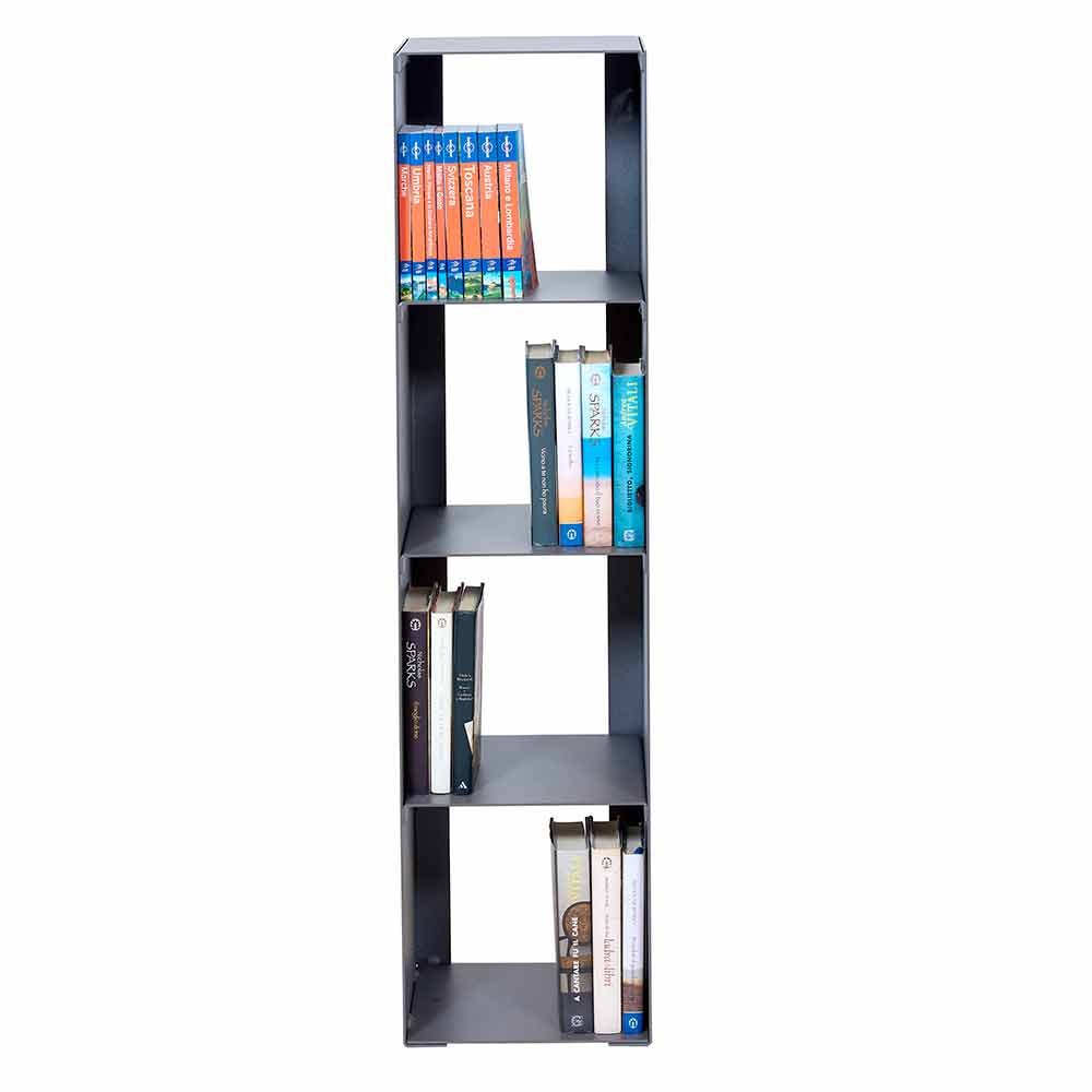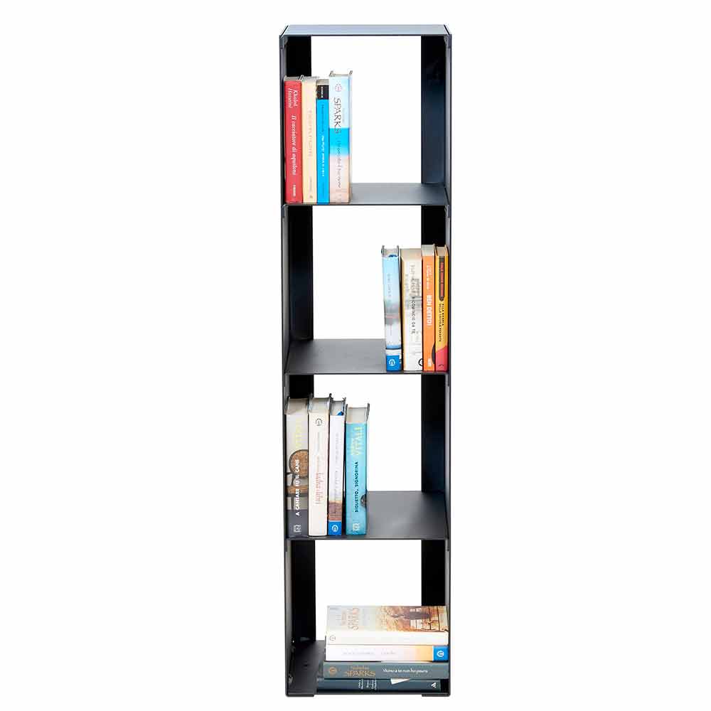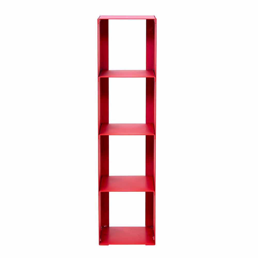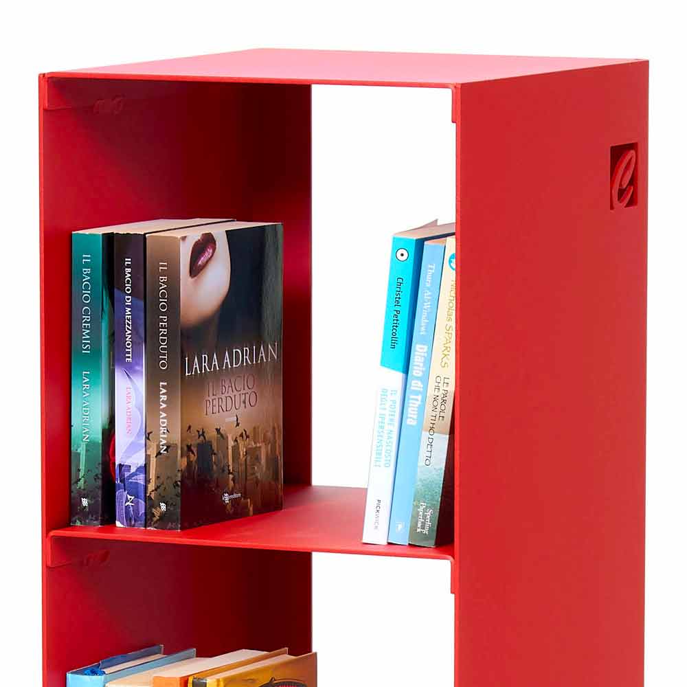 Raft librash për dysheme me stil modern me rafte hekuri të pikturuara në të zezë, të kuqe, të bardhë ose gri; prodhuar në Itali.