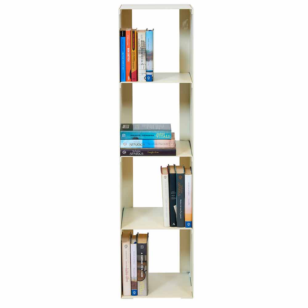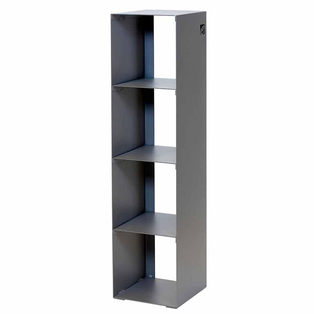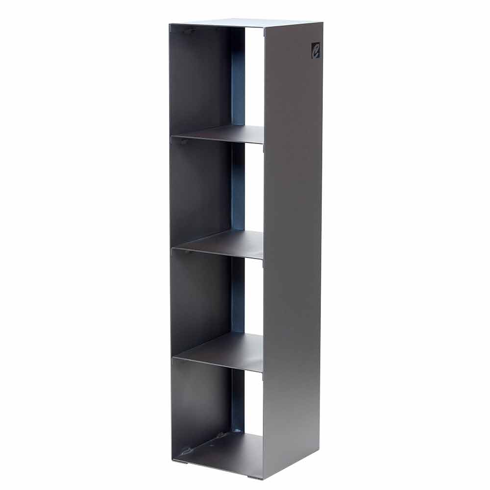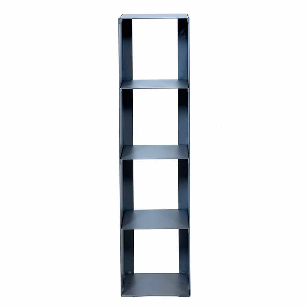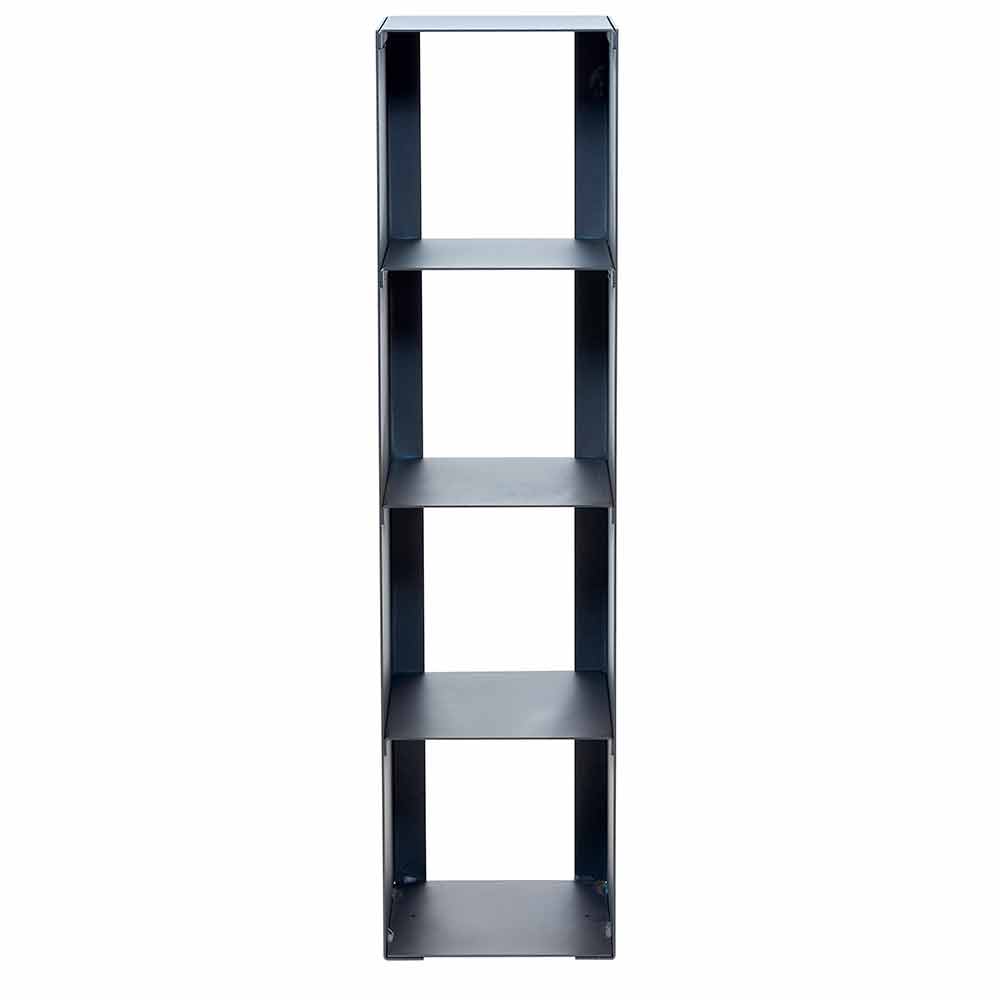 Raft librash për dysheme me stil modern me rafte hekuri të pikturuara në të zezë, të kuqe, të bardhë ose gri; prodhuar në Itali.
