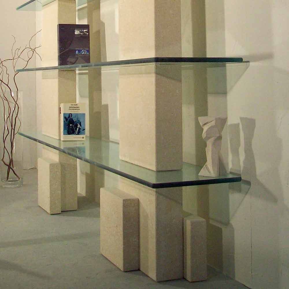 Raft i modës moderne i bërë prej guri natyror dhe kristal Poplia Rafti i librave Poplia është bërë plotësisht në Itali . Madeshtë prej guri natyror Vicenza dhe pajiset me 4 rafte kristalesh me skaje të përafërt. Struktura është e përbërë nga elemente modulare me lartësi 35 cm. Një strukturë e brendshme siguron stabilitetin ndaj përbërjes. Guri natyror Vicenza përbëhet kryesisht nga karbonati i kalciumit, me origjinë nga kolapsi i Reef Coral dhe vendbanimi në fund të detit të organizmave detarë, siç janë predha, krustace dhe algat. Raftet e librave të projektuesve Poplia vijnë me një Certifikatë të Numëruar të Autenticitetit.