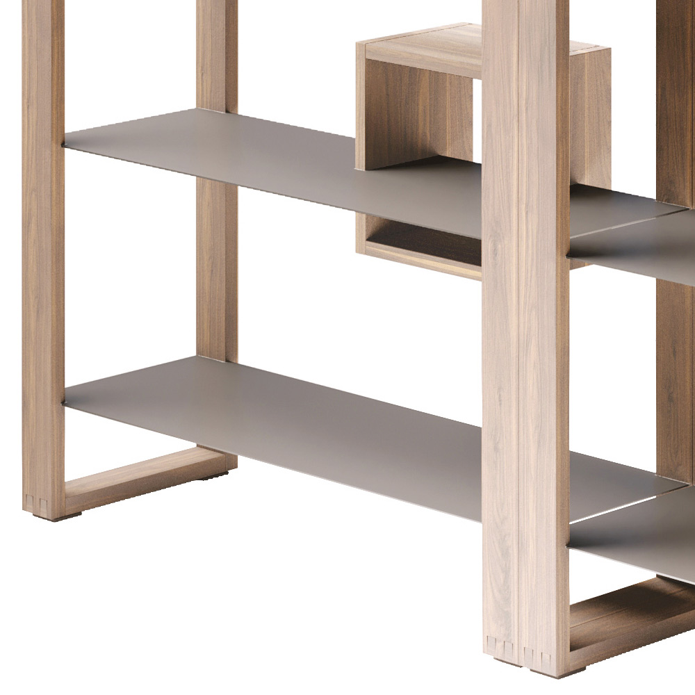 Raft librash të hapur modular dhe të ndërrueshëm nga druri i arrës me rafte në dru të llakuar Prodhuar në Itali.
